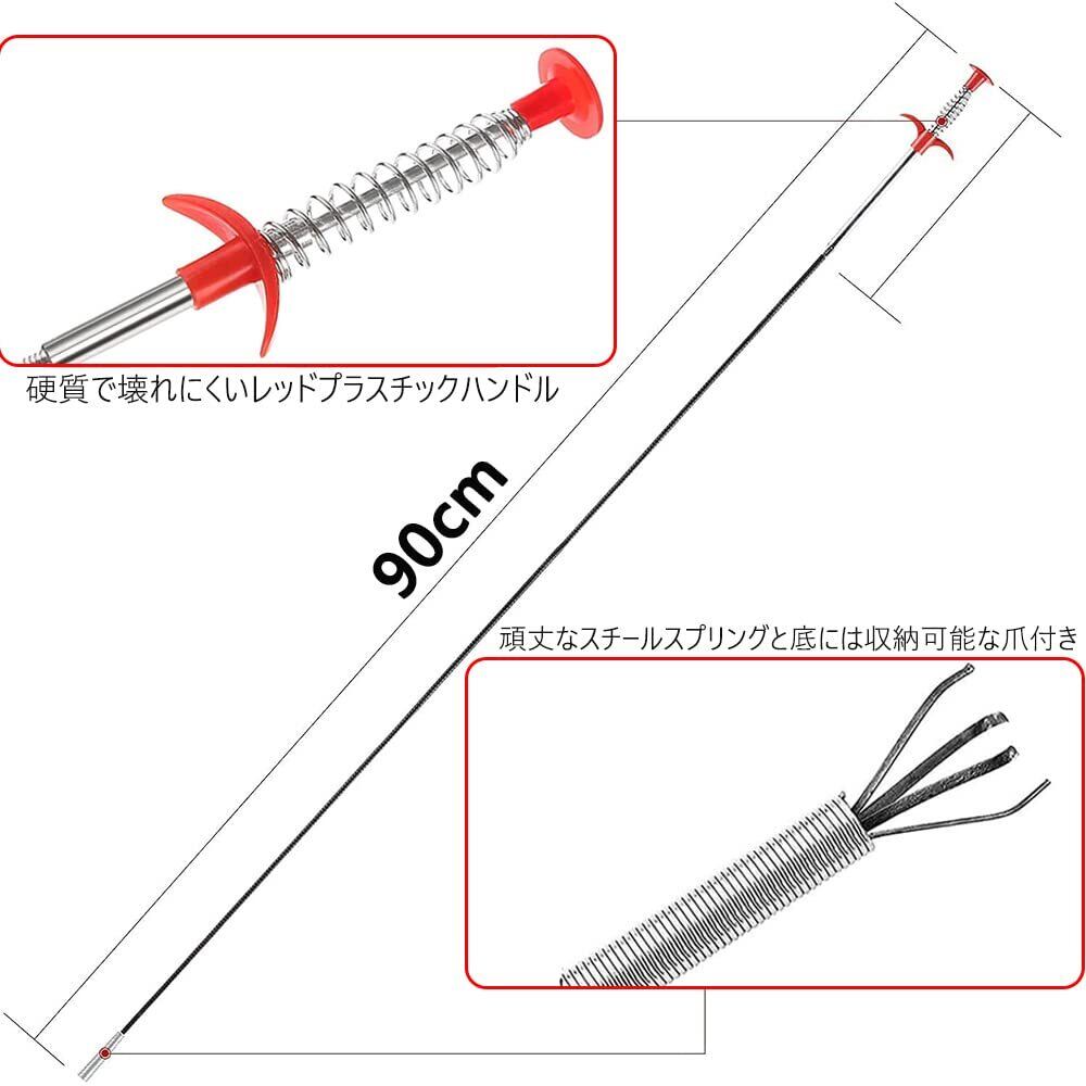 LIKENNY パイプクリーナー 柔軟なグラバーピックアップツール 4本ワイヤー爪 自由に曲がる 排水管 排水溝 掃除道具 風呂 洗面所 キッチン トイレ ゴミ (90)