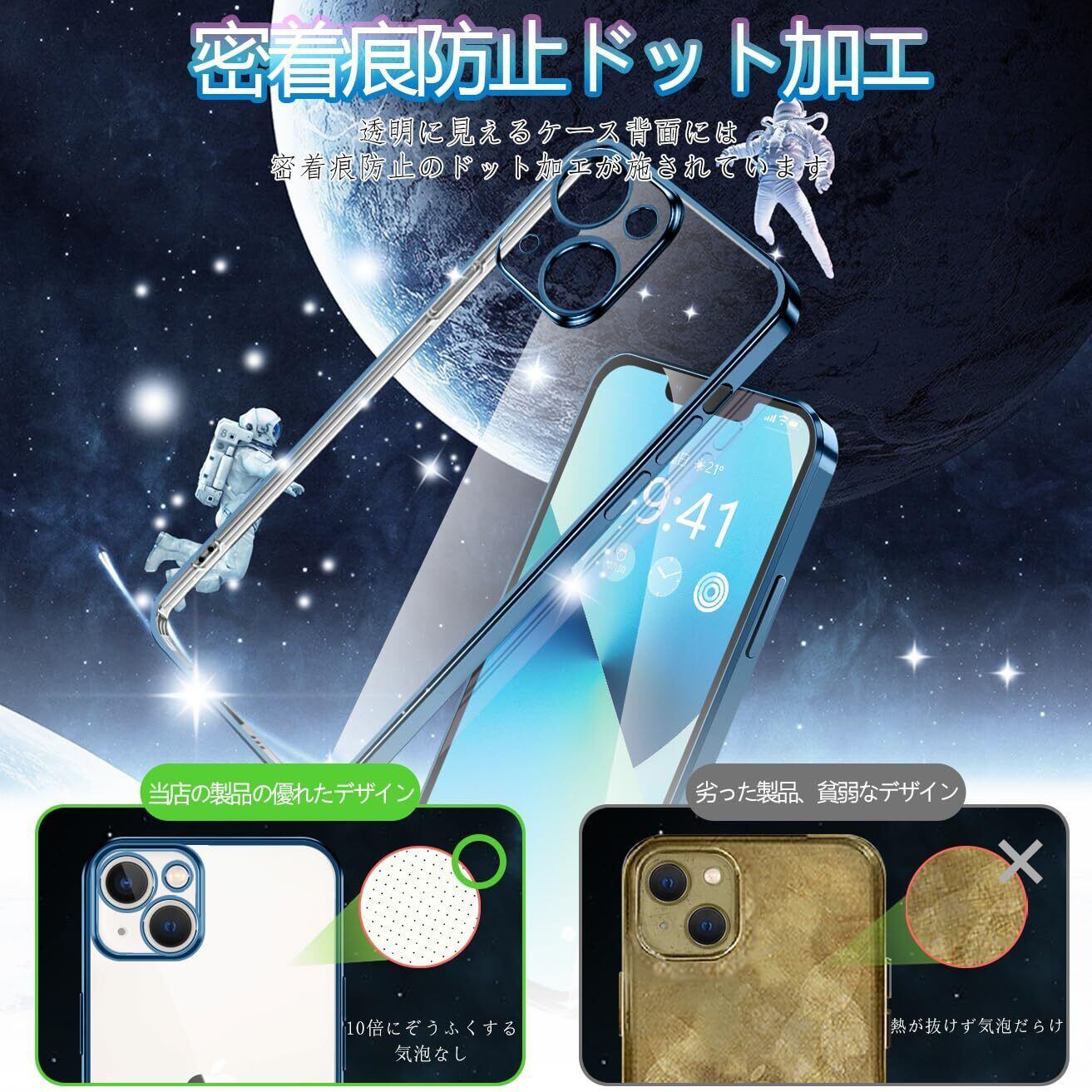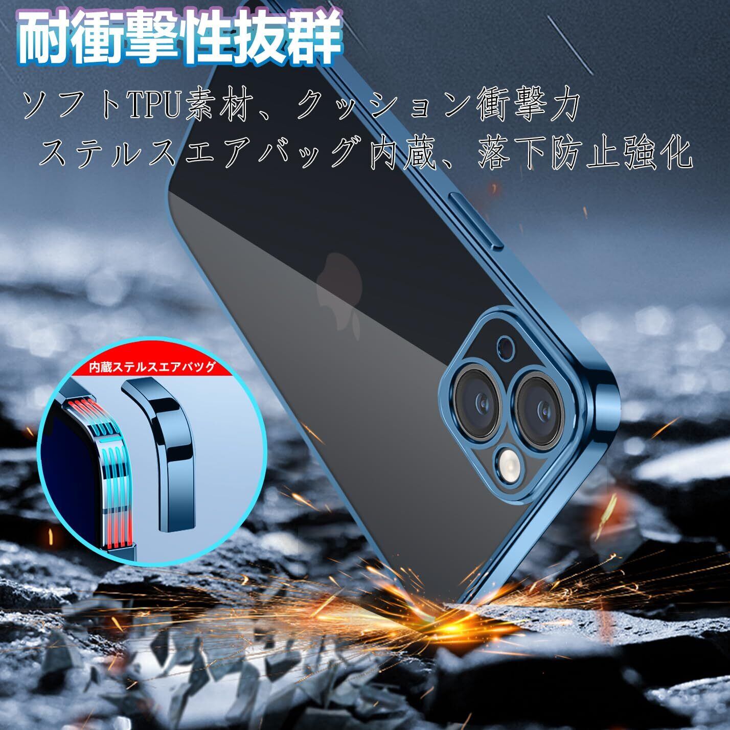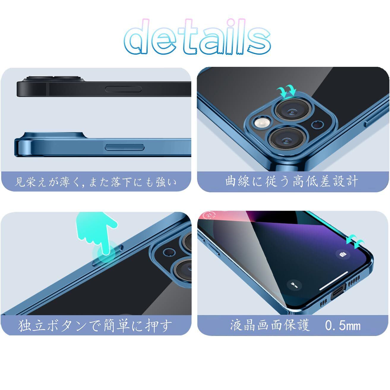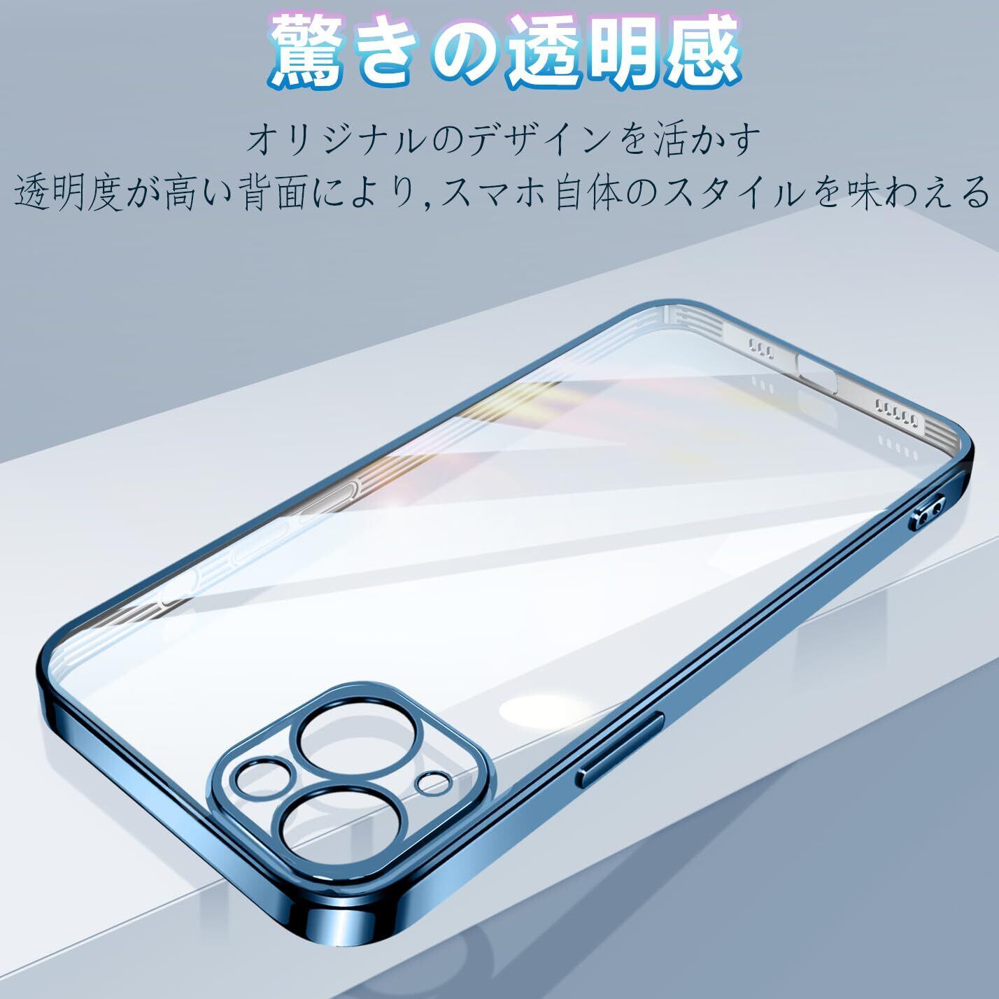 iphone13 ケース クリア カバー 耐衝撃 透明 TPU 薄型 軽量 メッキ加工 ソフトケース 人気 アイフォン13 6.1インチ 一体型レンズ保護カバー 型(ブルー)