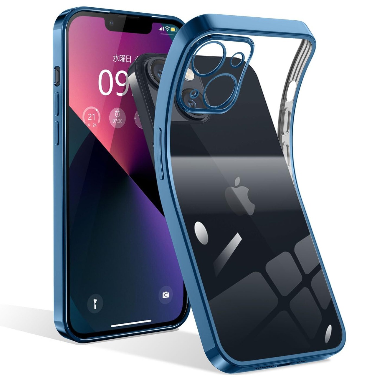 【在庫セール】iphone13 ケース クリア カバー 耐衝撃 透明 TPU 薄型 軽量 メッキ加工 ソフトケース 人気 アイフォン13 6.1インチ 一体型レンズ保護カバー 型(ブルー) | Premium Stage
