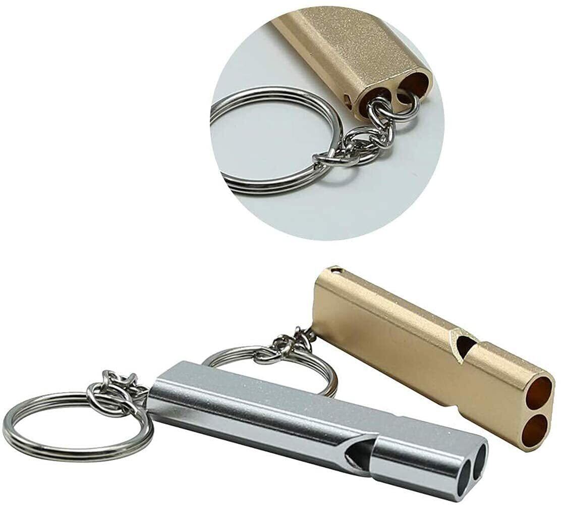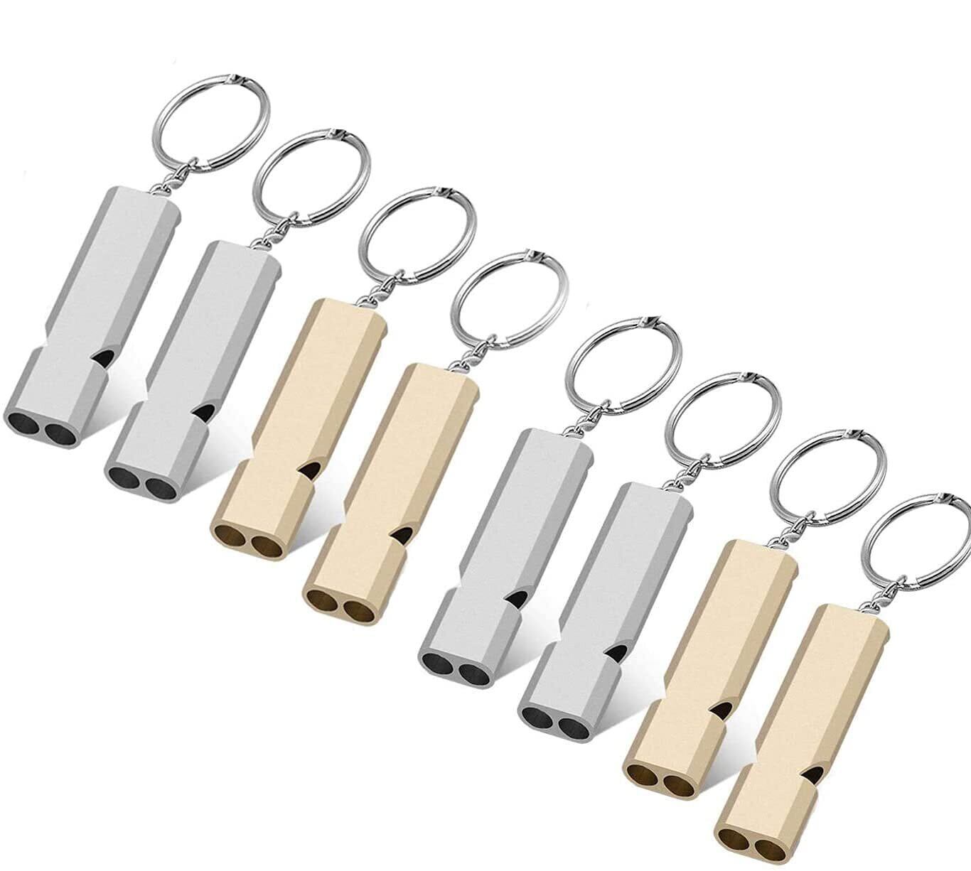 ホイッスル 防災 アルミ製 笛 救援 8枚セット キーチェーン付き 金色/銀色