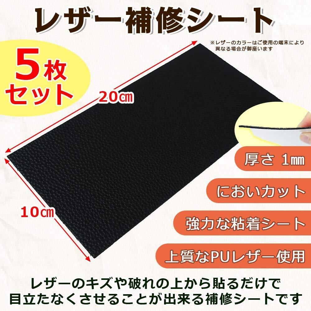 ING STYLE 革修理のプロも絶賛 魔法のレザー補修シート 5枚セット シールタイプ (ブラック)