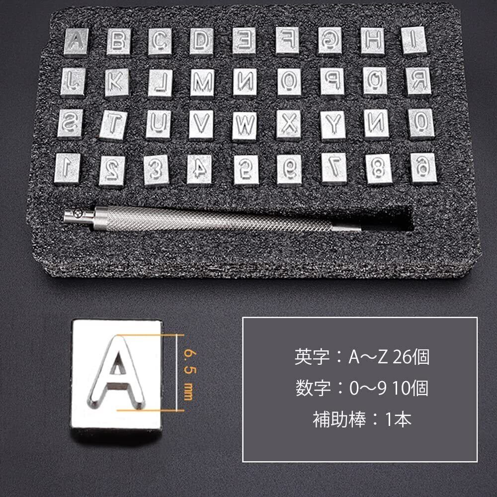 セット内容:刻印セット1セット(アルファベットA~Z計26個の英字刻印+0~9計10個のデジタル刻印+1本使用補助棒)、スタンプのサイズ:約6.5 MM(ゴシップ体)。