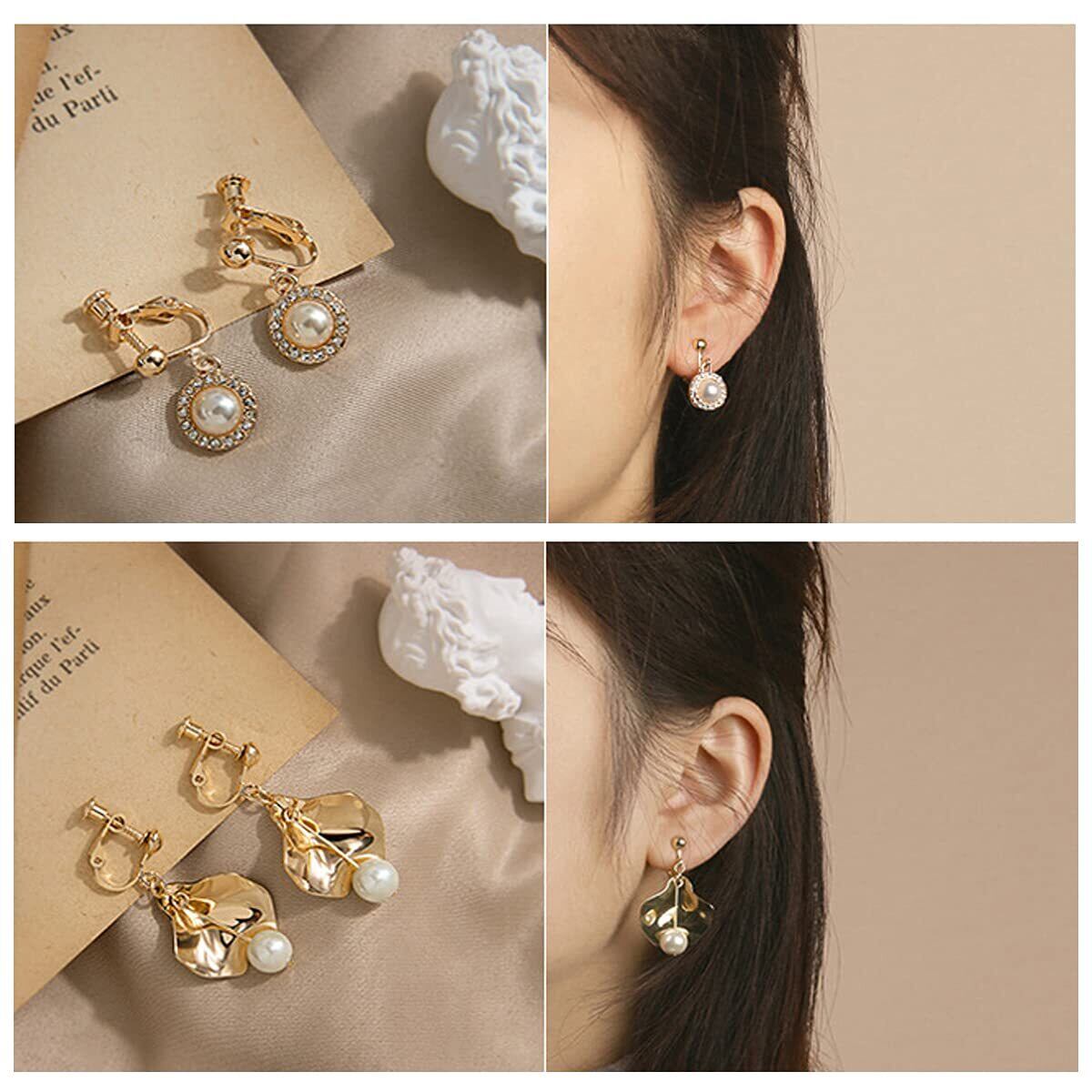 イヤリングパーツ 手芸 手作り用 DIY 基礎金具 アクセサリ ーパーツ ジュエリー 耳穴なし ネジバネ式 (ゴールド+シルバー各20個)