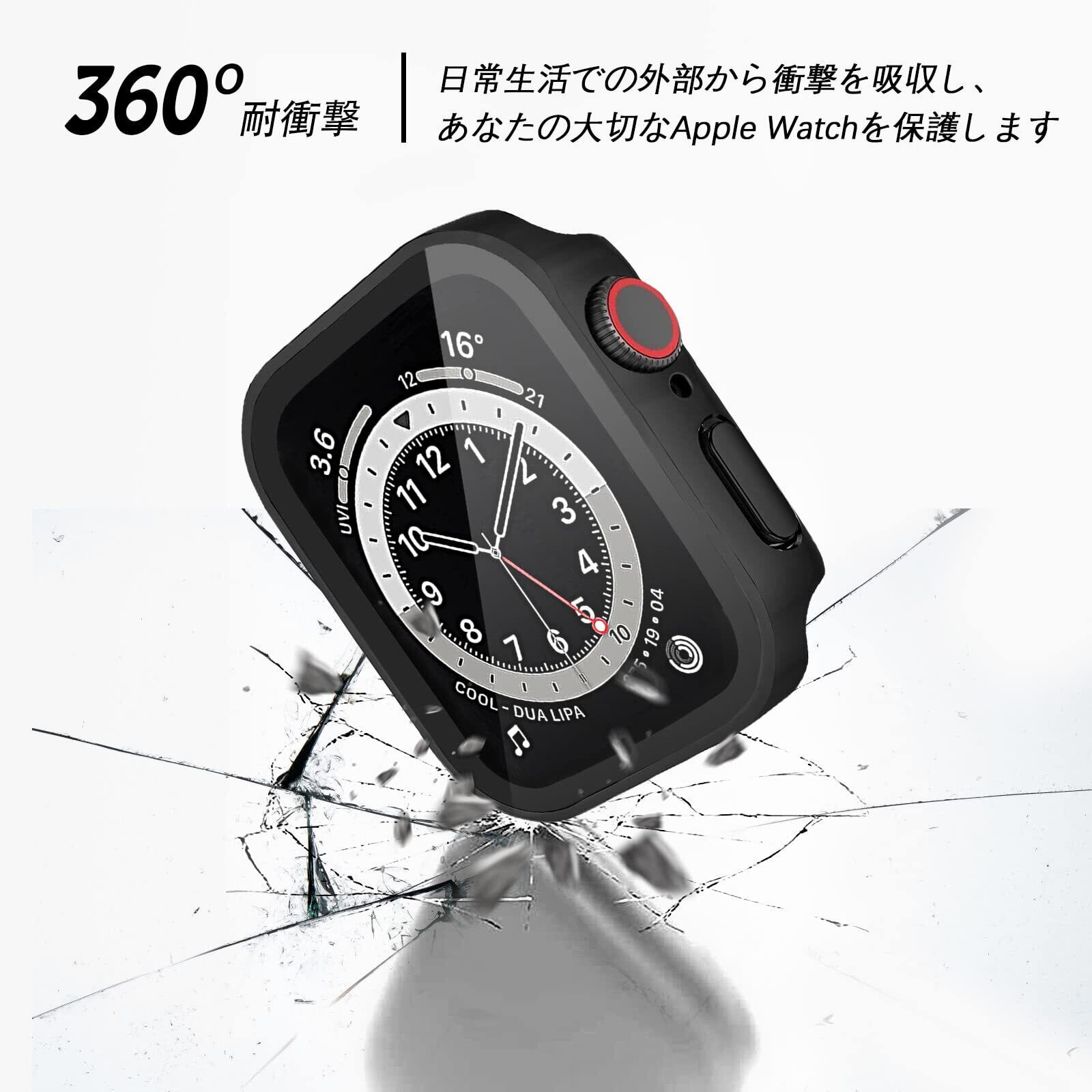 【防水・防塵ケース】シーリングリング内蔵したアップルウォッチ ケース、Apple Watchの画面にぴったりとフィットし、水の浸入を防ぎます。ほこりを完全に防ぎ、ケースを取り外して水を拭くすることを繰り返す必要はありません。疎水性撥油性抜群の強化ガラス表面により、カバー面に水が溜まらず、シャワー、手洗い、発汗、運動、雨など、日常の使用に適しています。 ※ご注意:ウォッチの画面とカバーの間に水が浸入する場合、保護カバーを取り外し、柔らかい布で水を乾かしてください。