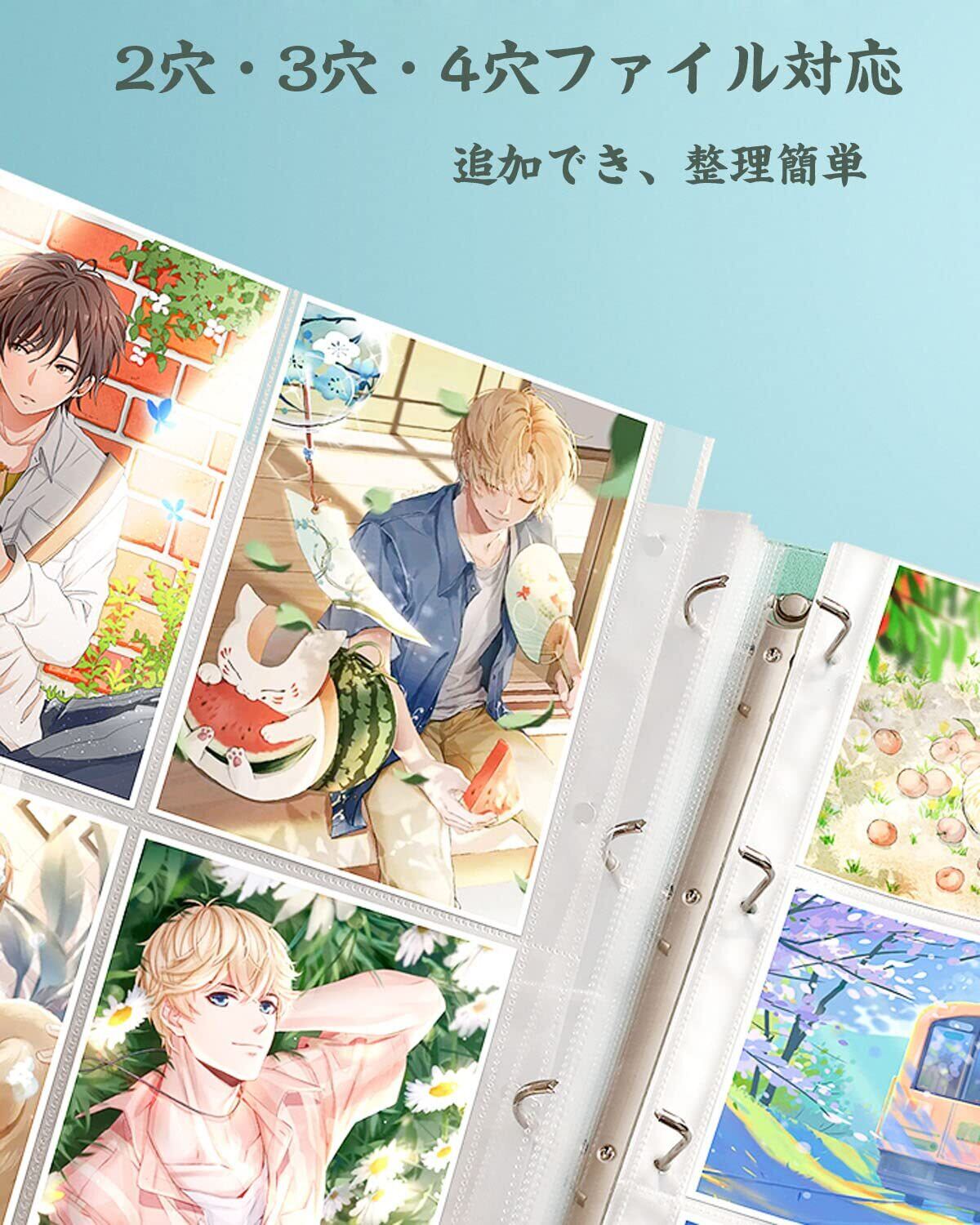 [大切なコレクションを守る]写真、イラスト、雑誌の切り抜きなどをきれいに収納可能大切なコレクションを日焼けや汚れから守ります.2穴・