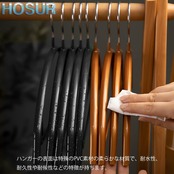 【滑りにくいビニールコーティングのスリムなスチールハンガー】スチール製のハンガー本体はPVC樹脂で特殊コーティングが施され、掛けた衣類が滑り落ちません。人体のラインに合わせた立体構造のため、滑り落ちやすいカーディガンやニットも型崩れなく収納できます。また、バーの両端にフックがあるので、キャミソールやスカートなどの固定もできます。