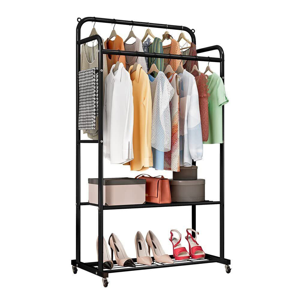 【2022最新】「Regibelie」パイプハンガーラック ハンガーラック 物干しスタンド 洋服ラック 洋服ハンガー ワードローブ ダブル コート掛け 衣類収納 頑丈 大容量 省スペース キャスター付き 組立簡単 (75*33*153cm, ブラック) | Premium Stage