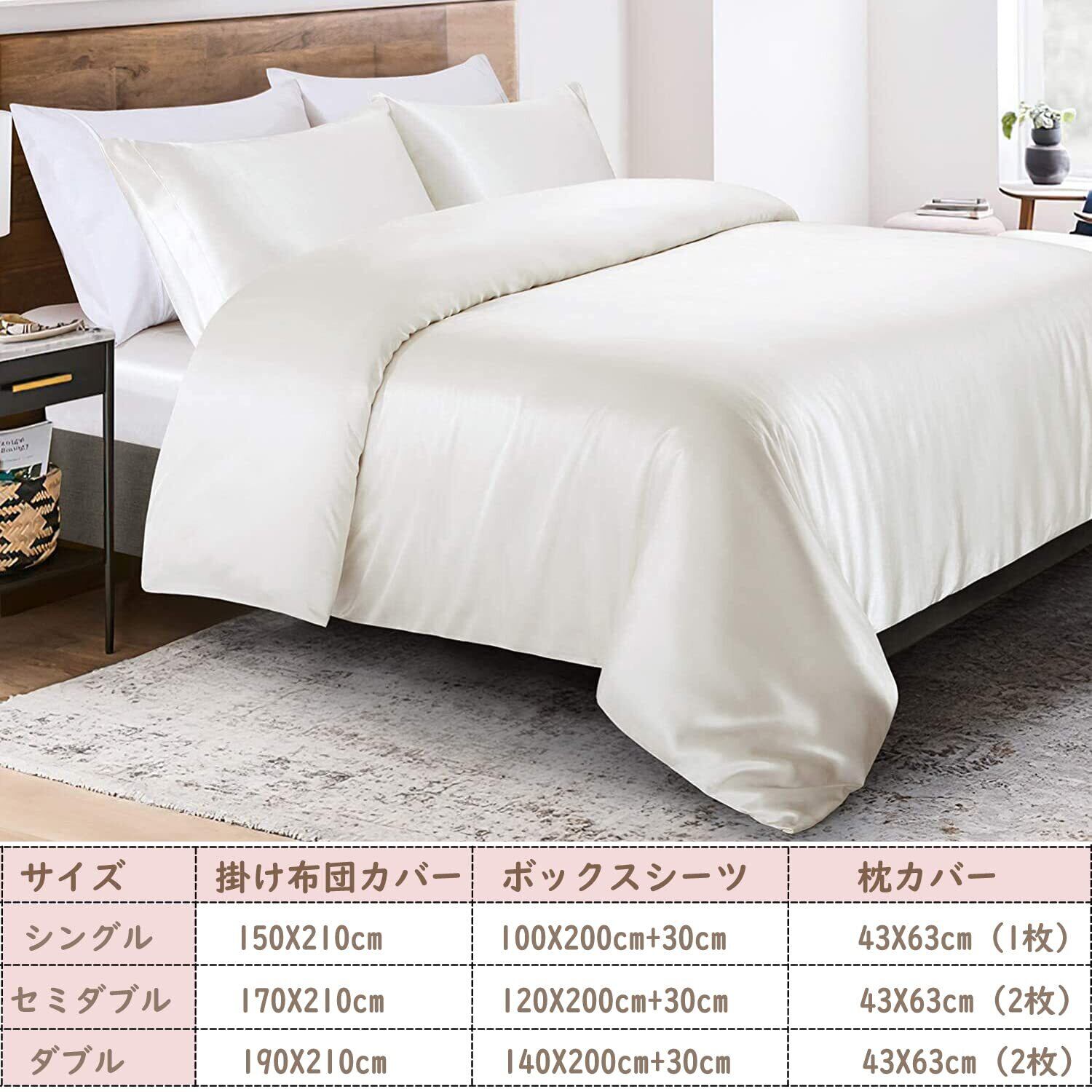 【布団カバーシングル3点セット】掛け布団カバー・150X210cm、ボックスシーツ・100X200+30cm、厚さ5-30cmのマットレスにぴったりフィットします。封筒枕カバー・43X63cm(1枚)。上品な極細ポリエステル生地と高密度のサテン織りで、シルクのように滑らかな肌触りとつや感が生まれました。