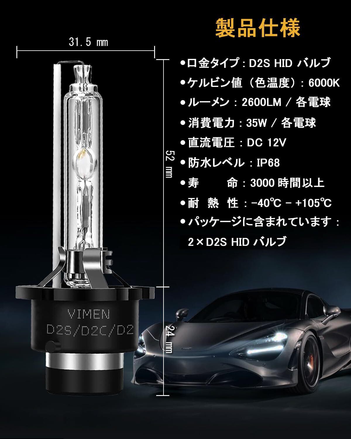 VIMEN ヘッドライト D2S HID バルブ 6000K 35W 純正交換用 HIDライト 12V 車用 HID 交換球 2個入