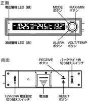 本体前面の[VOLT/TEMP]ボタンで内外気温の表示切替が可能。