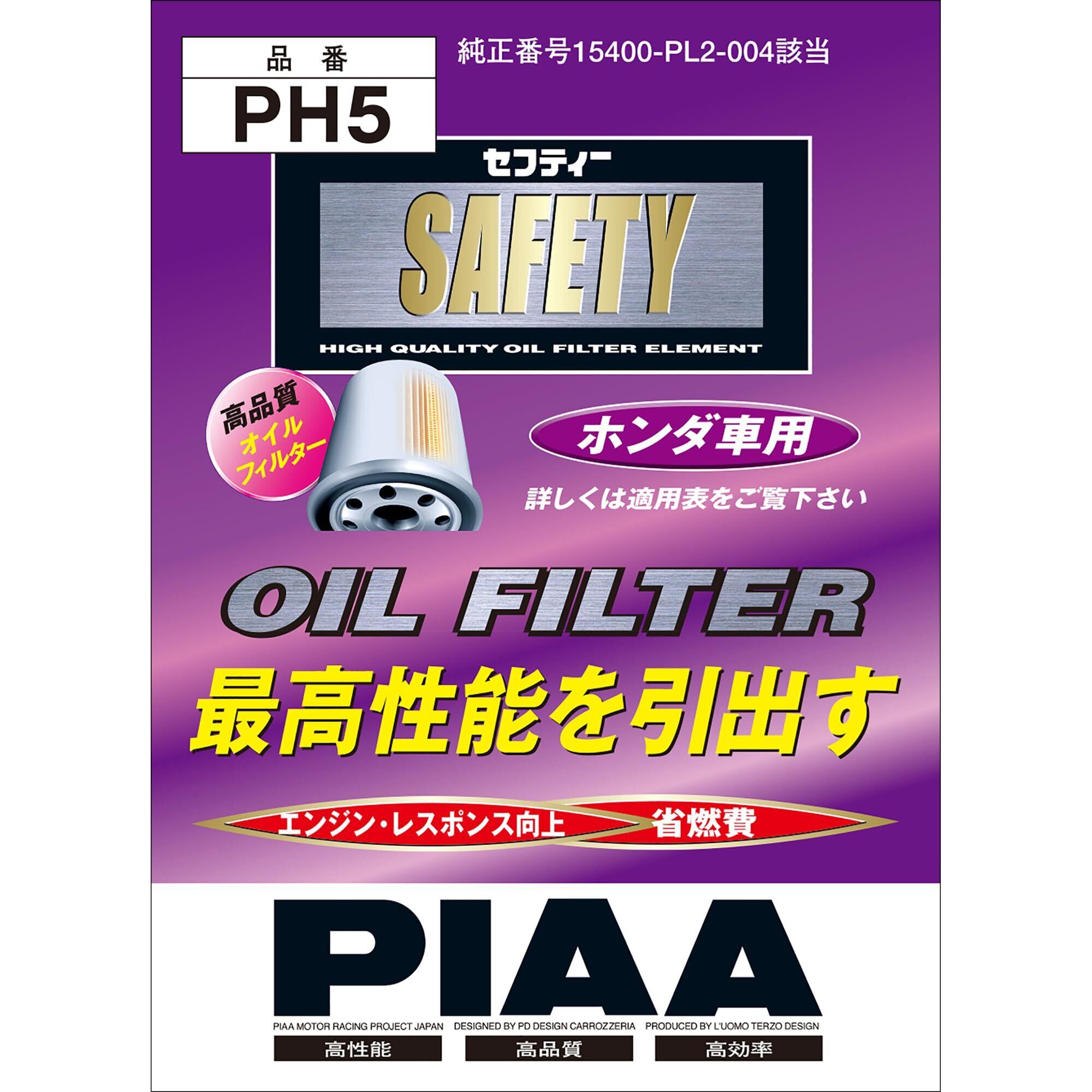 PIAA オイルフィルター オイルエレメント 《当社独自開発のスモールワイドプリーツ採用》 1個入 [ホンダ車用] NSX・インスパイア・レジェンド_他 PH5