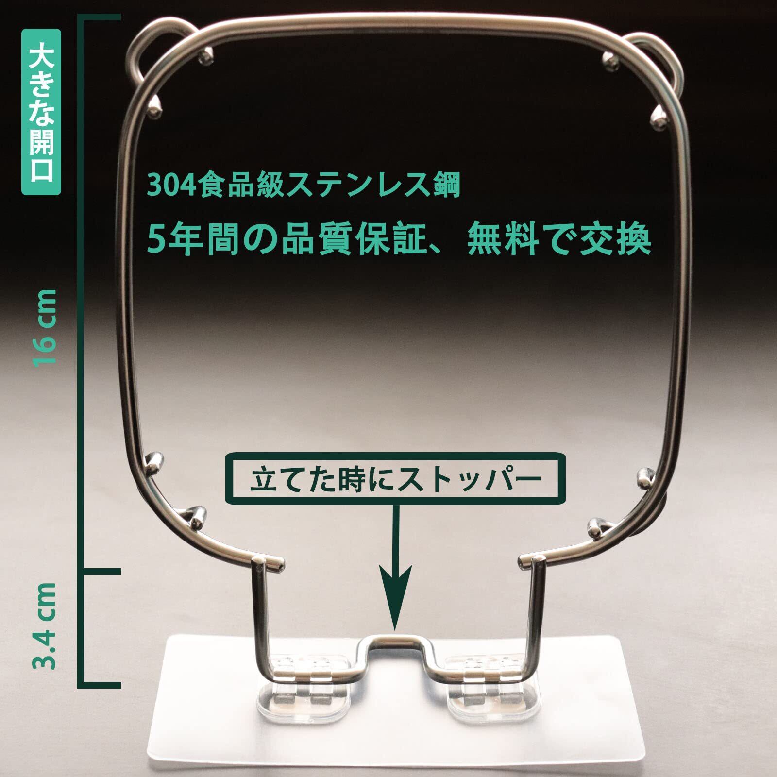 ママ倉 三角コーナー不要 シンク 水切り ゴミ袋用 ステンレス鋼 折りたたみ 立てる水切り袋 いらず 水切りネットホルダー 使い捨て 水切り袋ホルダー キッチン 水切りラック 台所 生ゴミ受け入れ スタンド さんかくこーなー 浮かせる 手持分解洗う 5年間用 大きな開口 15.8*19CM