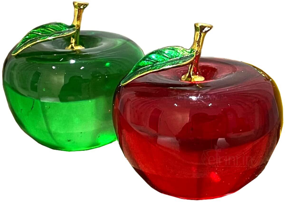 elrinrin りんご 風水 クリスタル インテリア 置物 癒し ガラス アップル ペーパーウェイト 赤緑/6cm
