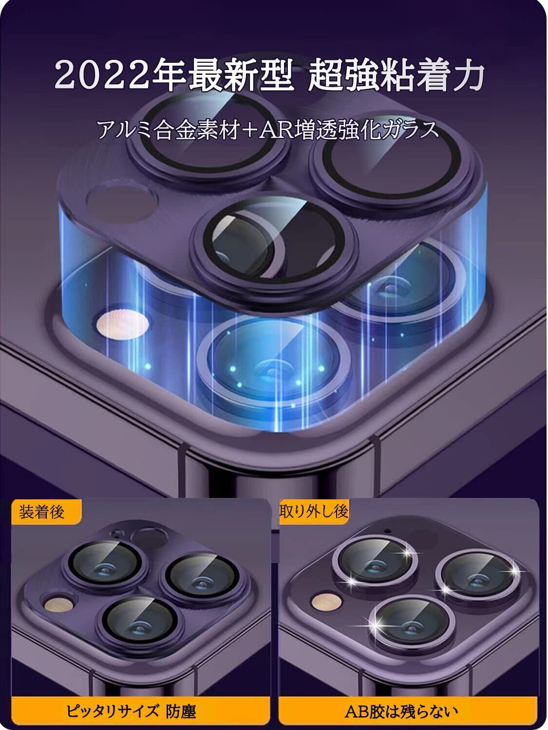 iPhone 14 Pro/14 Pro Maxカメラフィルム アルミ合金製+AR高透過率強化ガラス Apapeyaレンズ全面保護 14プロカメラカバー 0.25mm超薄 一体型レンズ保護フィルム レンズ保護ケース アイフォン14プロ マックス レンズ保護 フィルム 防爆裂 ・耐衝撃・スクラッチ防止・露出オーバー防止・ケースに干涉なし(1枚)パープル