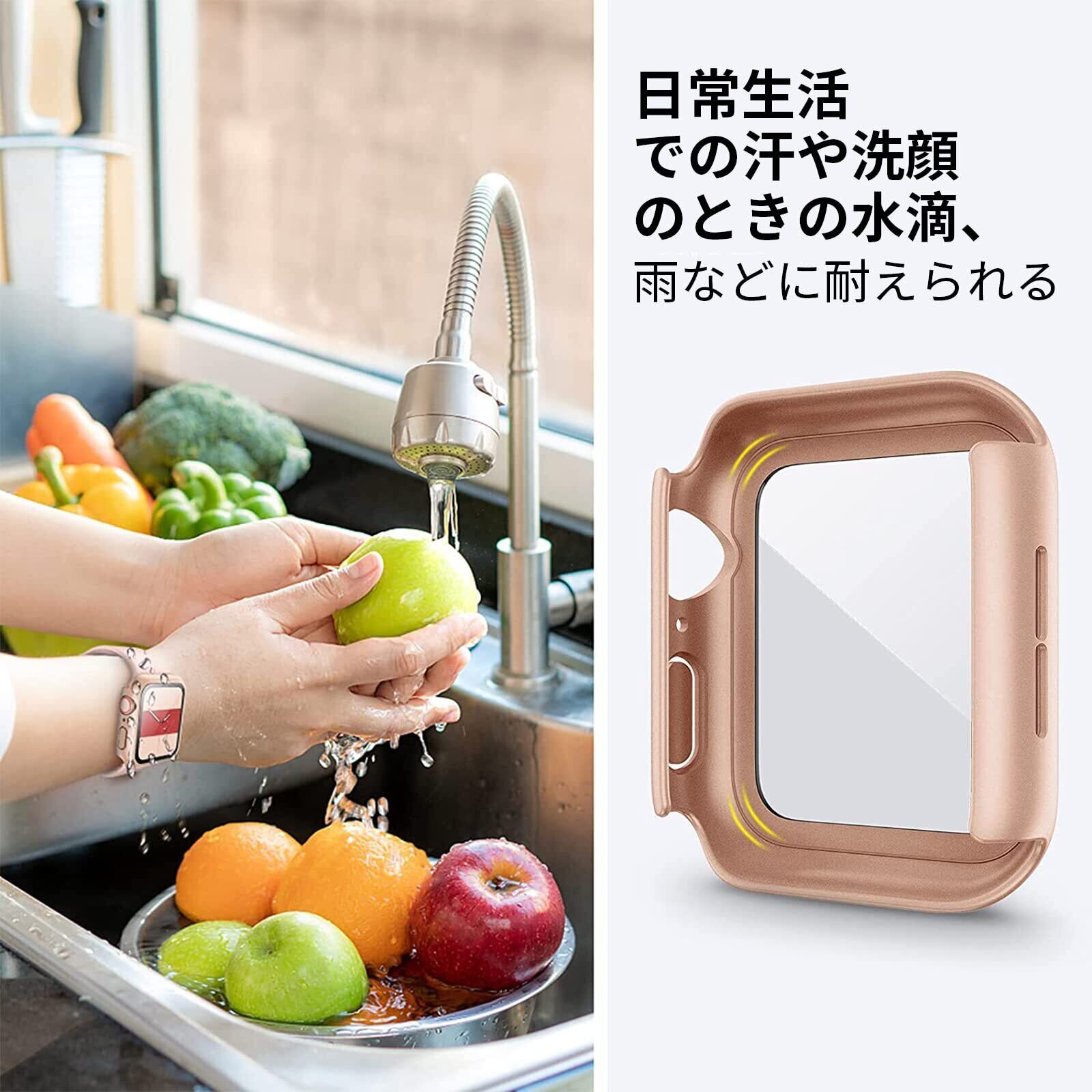 YOFITAR for Apple Watch 用 防水ケース series6/SE/5/4 40mm アップルウォッチ保護カバー ガラスフィルム 一体型 防水 防塵 PC素材 タッチ感良好 アップルウォッチ 用 カバー 全面保護 高透過率 指紋防止 衝撃吸収 (ローズゴールド,40mm)