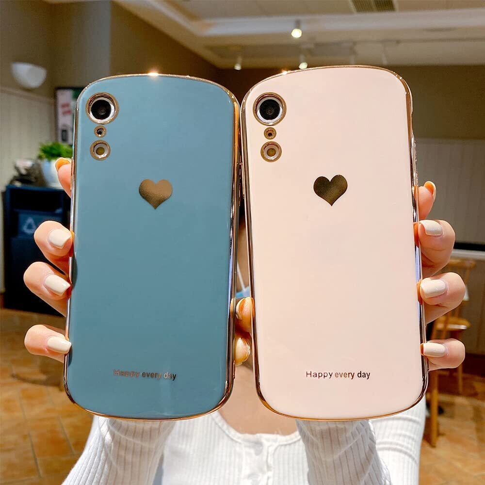JOOBOY iPhone XR ケース かわいい メッキ加工 レンズ保護 キャラクター tpu ソフト ストラップホール付き ブランド 耐衝撃 スリム おしゃれ アイフォンXR カバー (iPhone XR, ピンク)