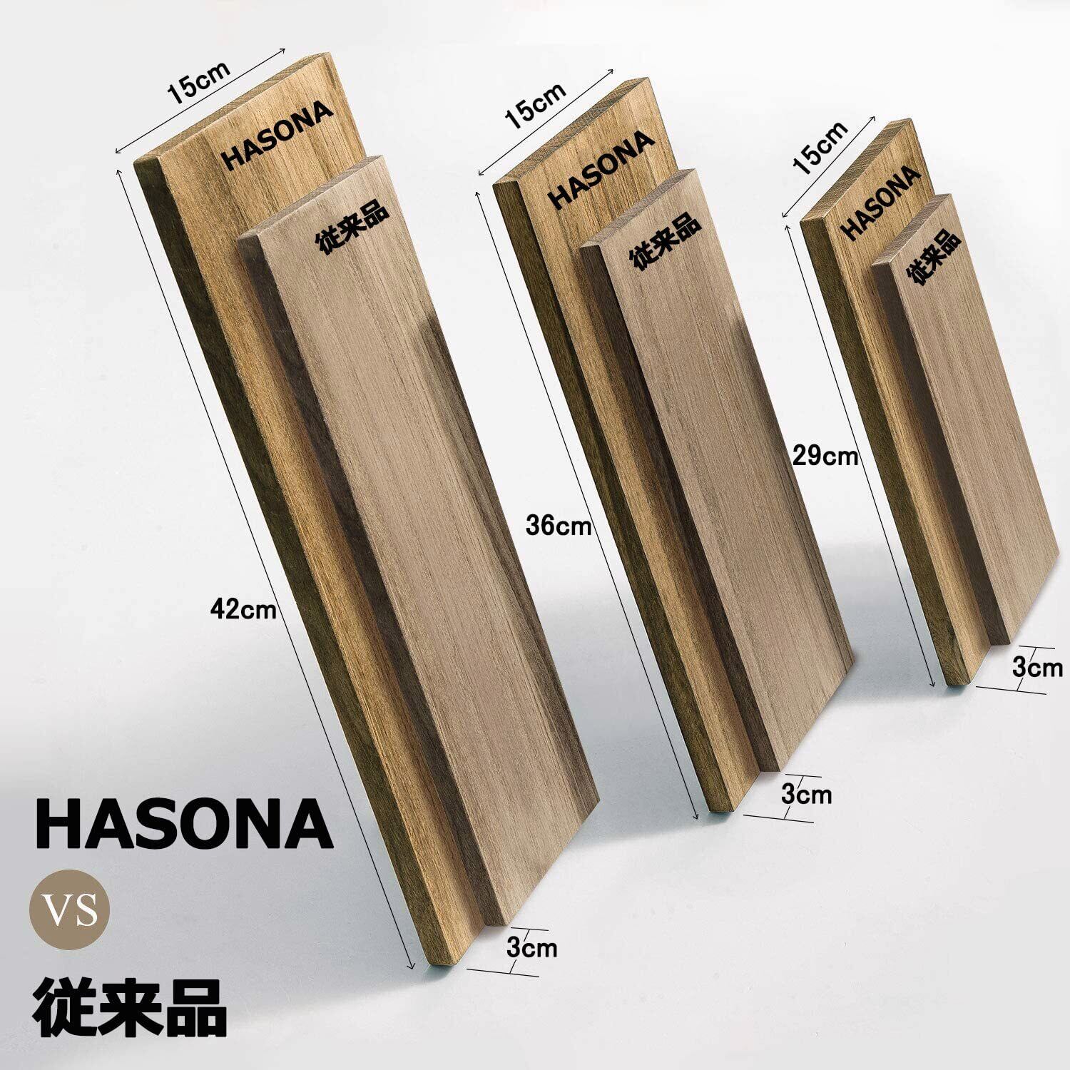 【大容量壁棚】ボードの最大幅は42cmです。HASONA壁掛け棚は通常の棚より広くて長く、より多くの収納スペースを提供することができ、小物落下を心配する必要はありません。3個セットのボードの寸法は、Lサイズ:42×15cm、Mサイズ:36×15cm、Sサイズ:29×15cm。