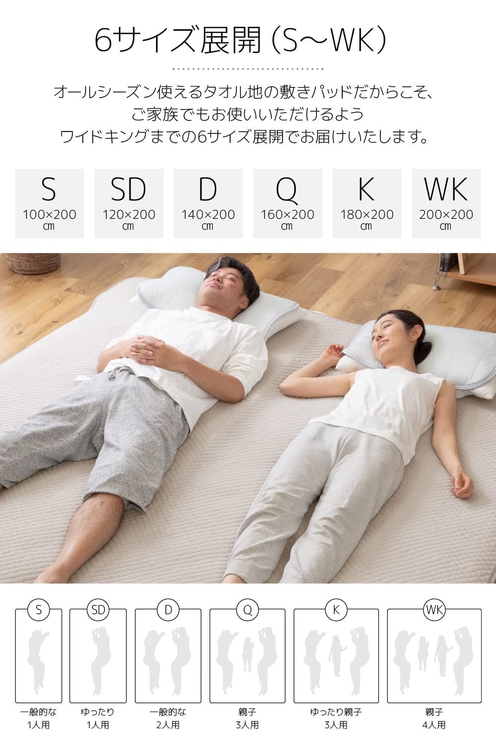 ✓【普段づかいにぴったりな敷きパッド】敷パッドの四隅にゴムバンドが付いているので、敷きパッド を布団にしっかり固定できます。シーツやカバーより、お洗濯の際の取り外し&取り付けも簡単なので、家事の負担も軽減してくれます。マットレスや敷布団にもお使いいただける 敷きパッド です。【 敷きパッド のお手入れについて】 パイル素材の特性上、使い始めは毛羽が発生することがございますので、ご使用前にお洗濯されることをおすすめします。お洗濯の際は、敷パッド を目の粗い洗濯ネットに入れて十分な水量で単独洗いし、屑取りネットで脱落した毛羽をしっかりとキャッチしてください。その後もお洗濯を繰り返されることで毛羽落ちは軽減していきます。柔軟剤は繊維がすべりやすくなり、毛羽落ちを誘発することがございますので、なるべくご使用をお控えいただくか、ごく少量の使用をおすすめします。生地に負担がかかり、敷パットの劣化を早めるためタンブラー乾燥はお避けください。
