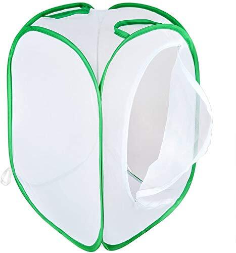 【人気商品】SATiNU 60*40*40CM昆虫飼育箱 植物ケージ 標本箱 折り畳み虫かご 昆虫ケージ ポップアップハウジング 通気性 ネット 4サイズ 3色 (B 緑辺 ホワイト網) | Premium Stage