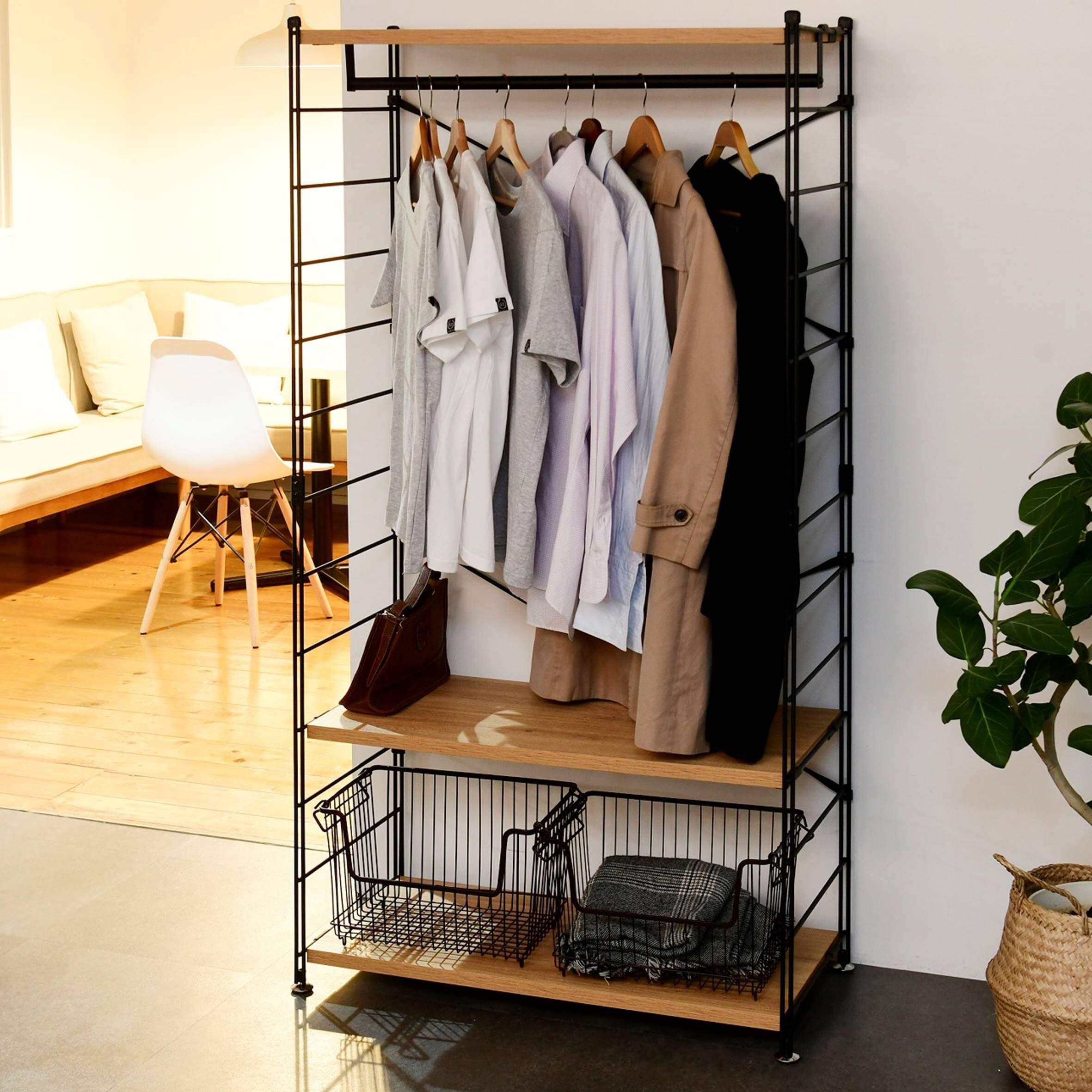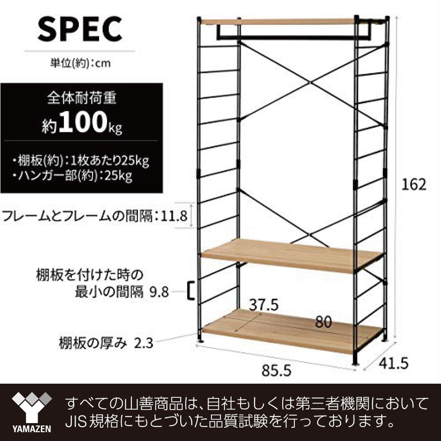 【特価セール】[山善] ハンガーラック 木製 全体耐荷重100kg ハンガー・棚板高さ調節 連結可能 ワードローブ クローゼット 一人暮らし 幅85.5×奥行41.5×高さ162cm 組立品 オーク/サンドブラック MWSW-16803(OAK/SBK) | Premium Stage