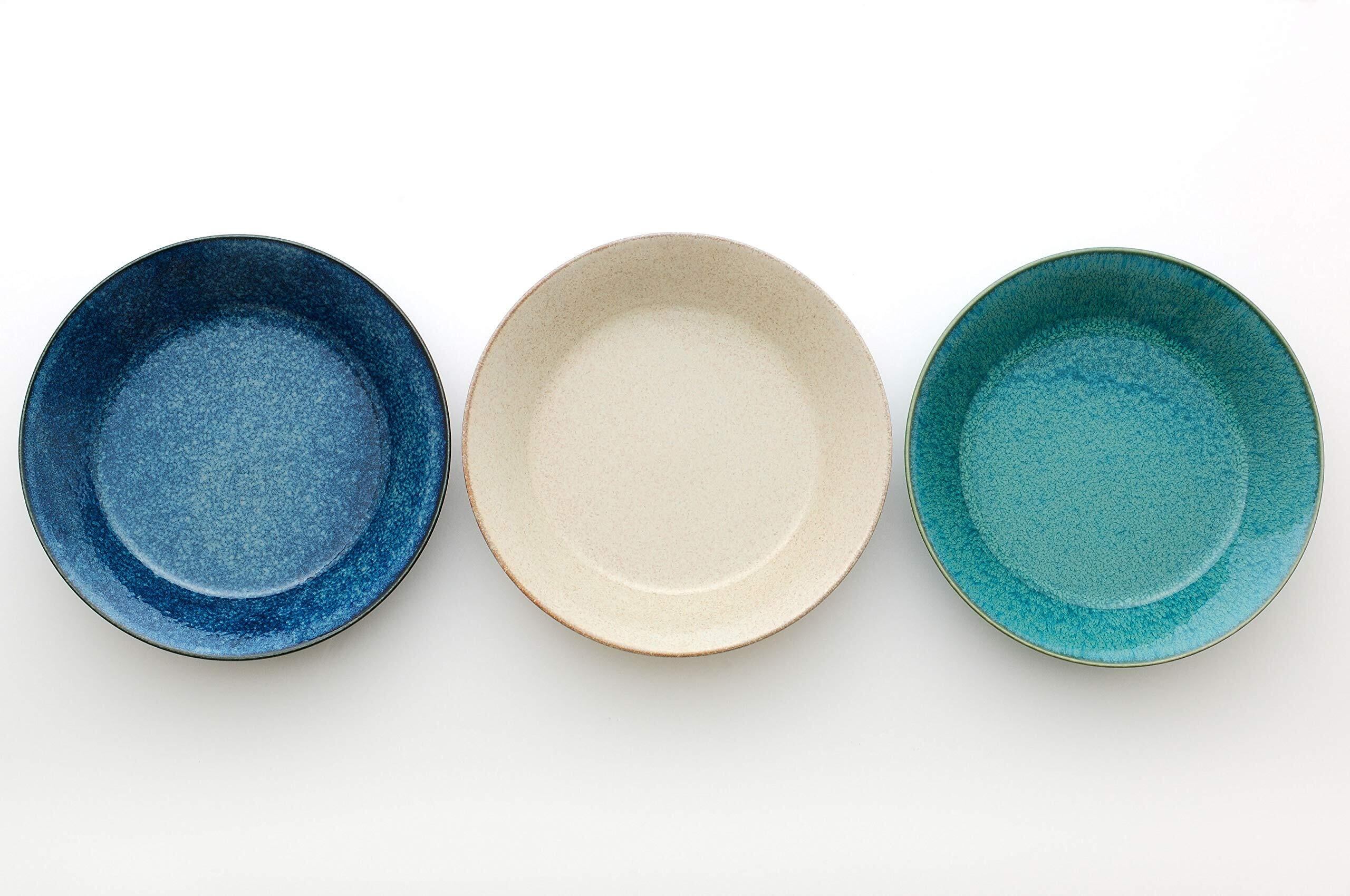 カレー皿 ブルー・ホワイト・グリーン 約径20.3×高4.3cm ナチュラルカラーカレー&パスタ皿(3色組) 20201235