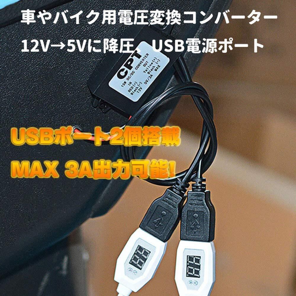 Hiro 車用USB電源ポート DC電圧変換コンバーター モジュール DC 12V→5V USB充電器 デュアルUSB MAX 3A出力 コンパクトサイズでDIYに最適 過電流保護