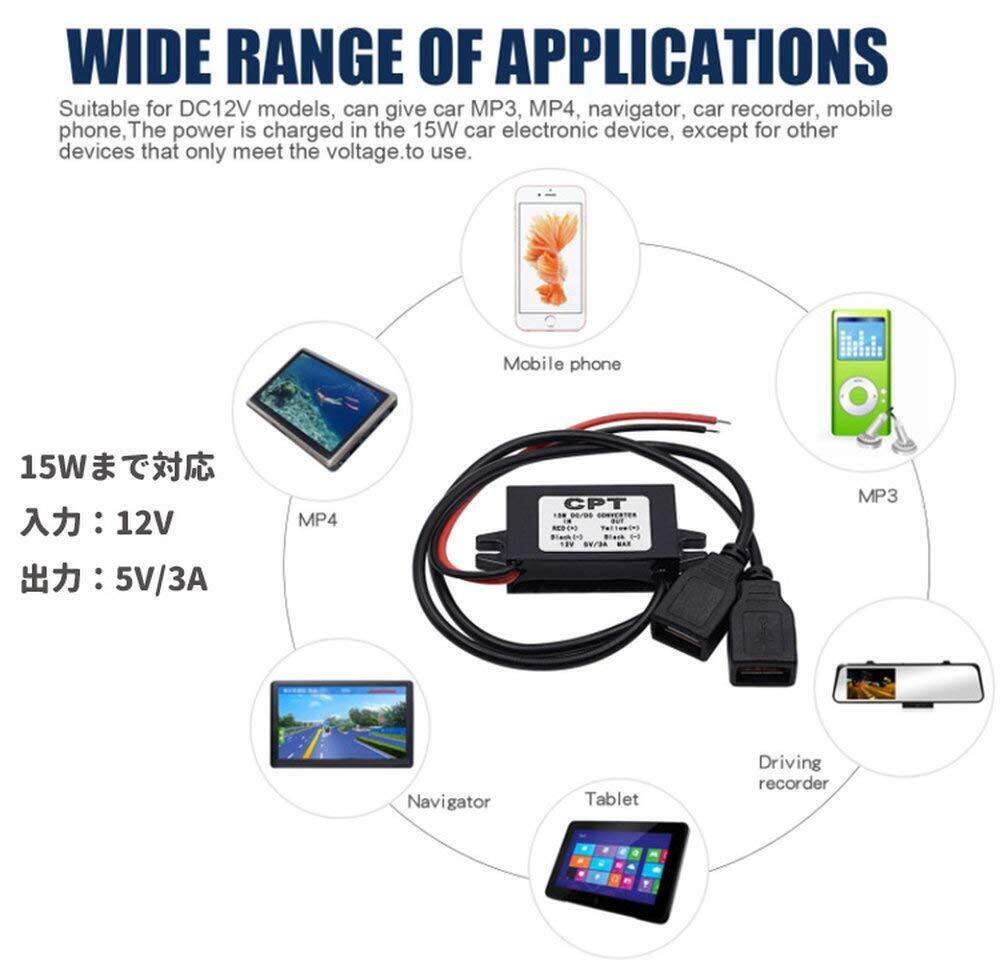 入力:DC12V 出力:DC5V 3A 消耗:15W