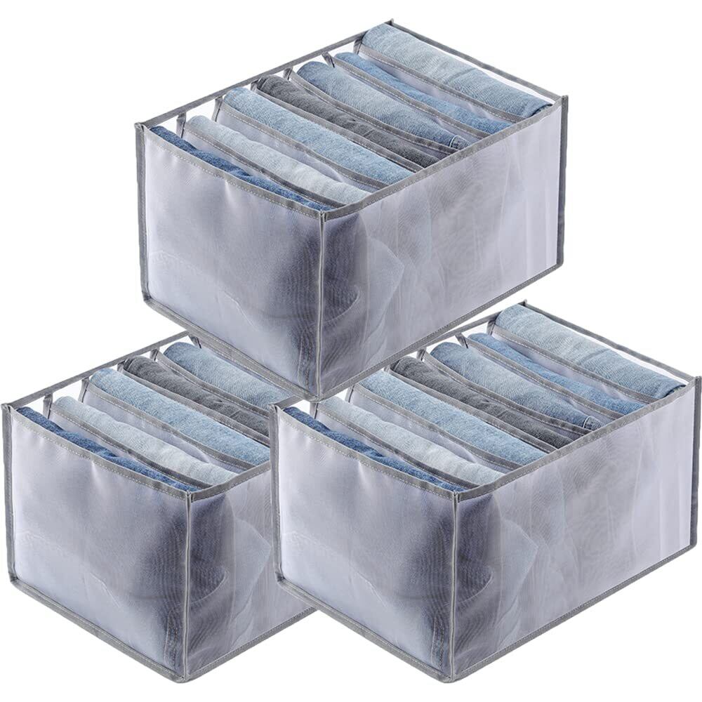 AZNABLE ズボン収納ボックス メッシュ ズボン収納 仕切り 衣類収納ボックス 収納ボックス 3個 セット (7仕切り, グレー)
