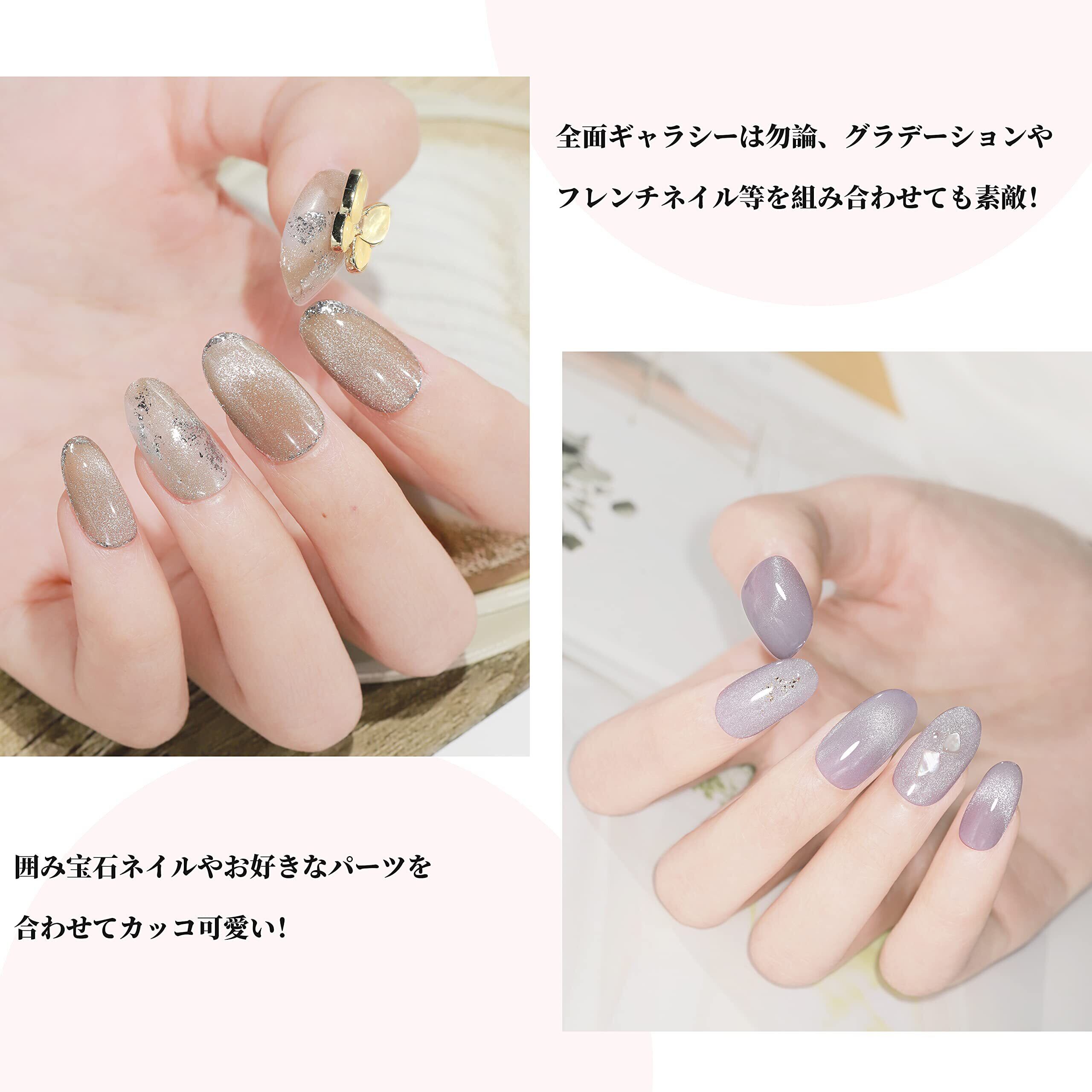 【クリアな透明感】マグネットネイルジェルはベースカラーがクリアカラーなので、 マグネットパウダー部分と透明感のクリアカラー部分の差が奥行のある新しい輝きへと導くジェルで、角度によって煌めくのでめっちゃキレイです。