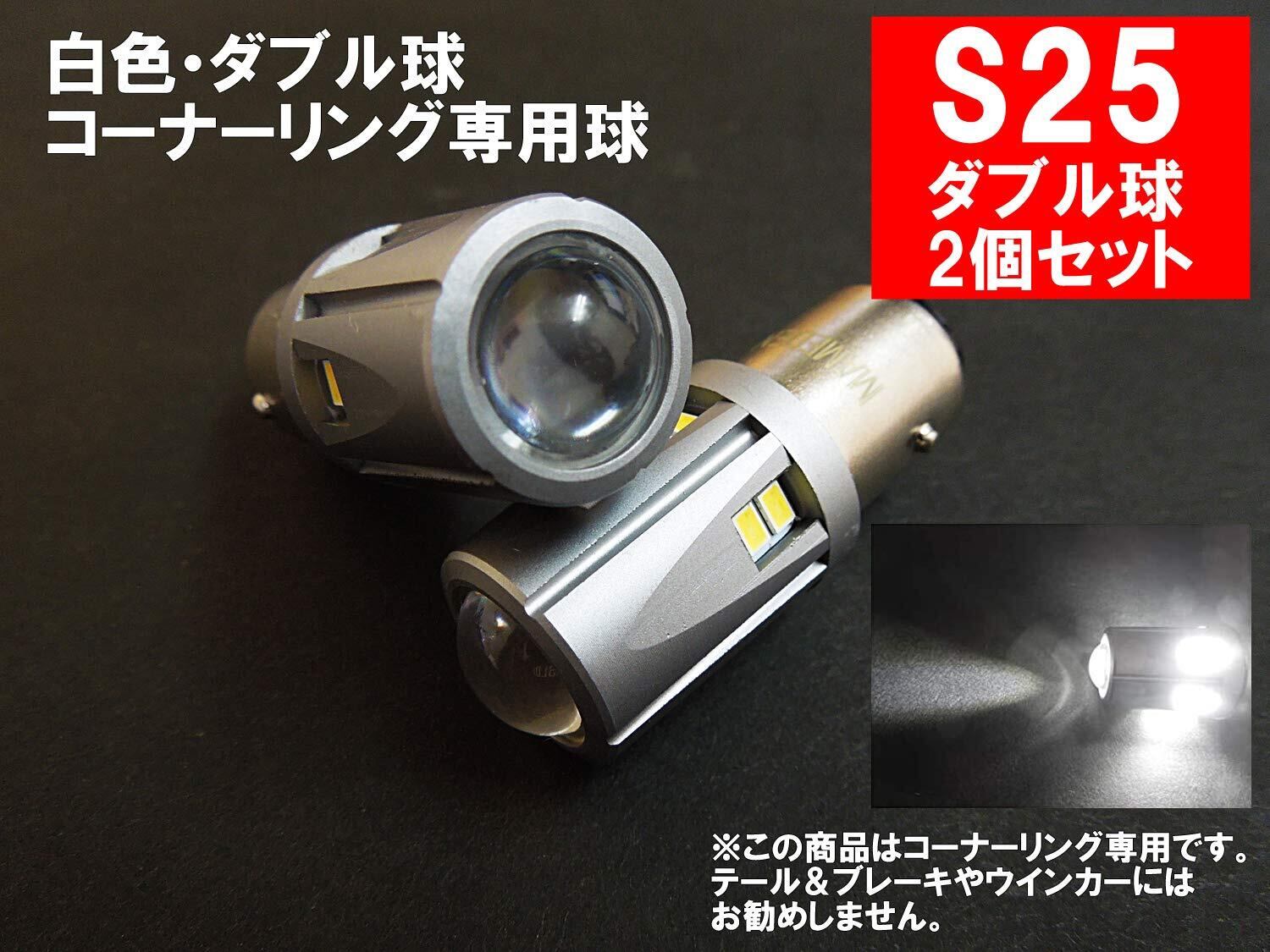 S25 LED ダブル ホワイト 30SMD コーナリングランプ(金口 ダブル ピン角180°段差あり)LEDバルブ 2個セット BAY15d コーナーランプ
