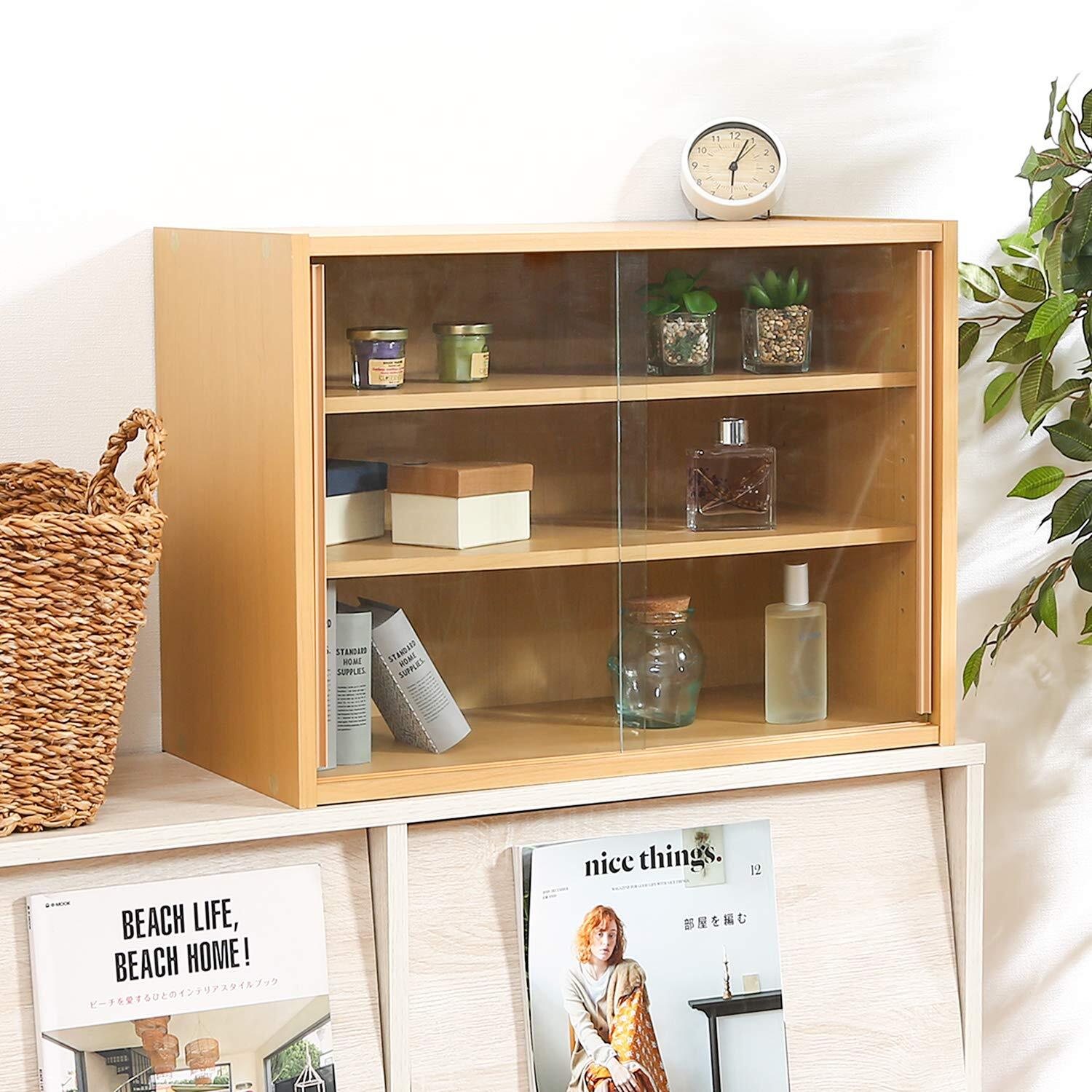 不二貿易 食器棚 キッチン収納 幅60×奥行29×高さ44cm ナチュラル ガラス扉 可動棚 組立品 81909