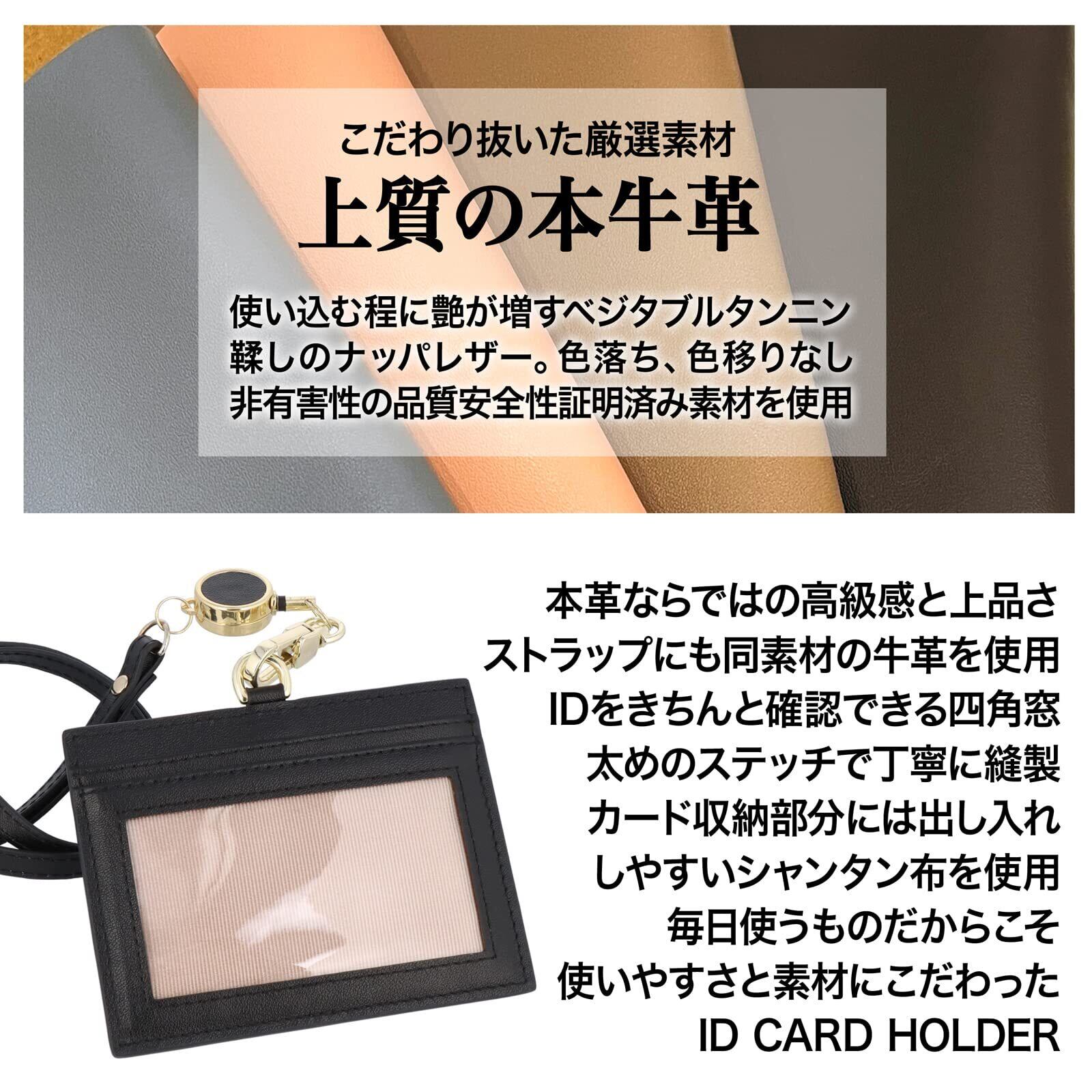 【高品質】 首から掛けるIDカードホルダーはふとした時に目に留まります。本製品は使い込む程に艶が増すベジタブルタンニン鞣しで製造されたナッパレザーを本体とストラップ全体に使用。厳選された素材は、さりげないシーンでも品格あふれる印象を発揮いたします。
