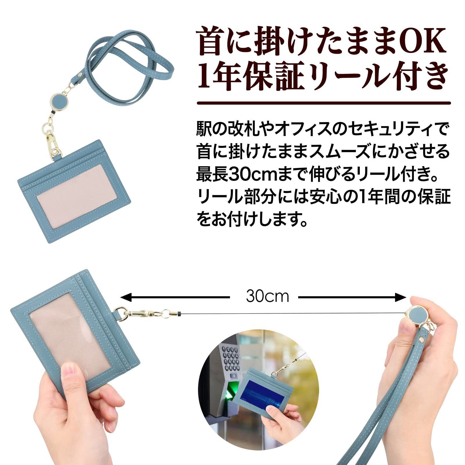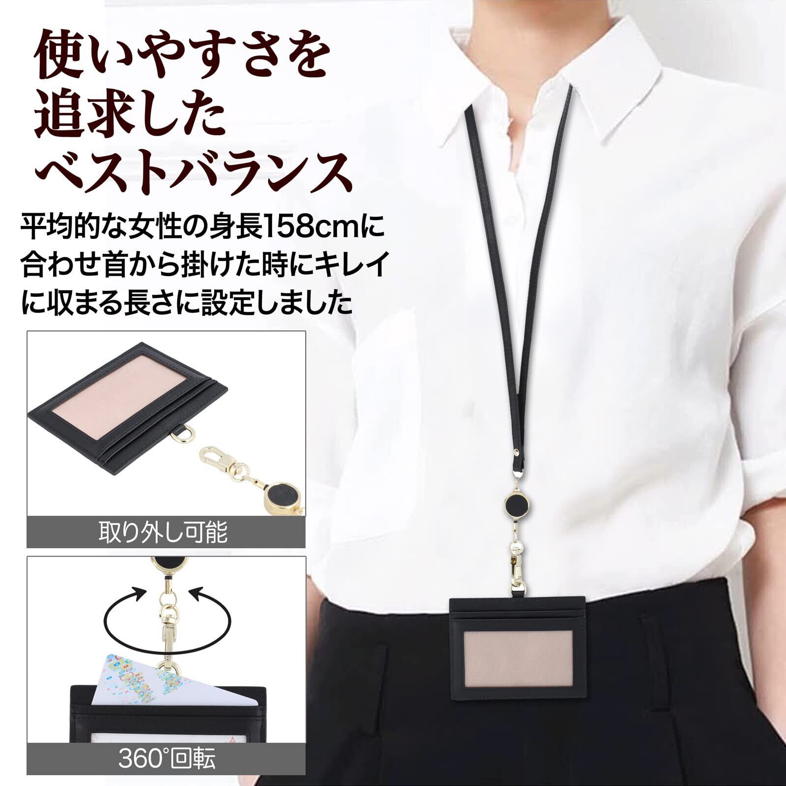 【両面クリアーの上質本革IDケース】 [Mont Solaire] IDカードケース カードホルダー 両面クリアー リール付 本革 革 首掛け ストラップ 4枚収納 横 社員証 入館証 資格証明書 定期入れ