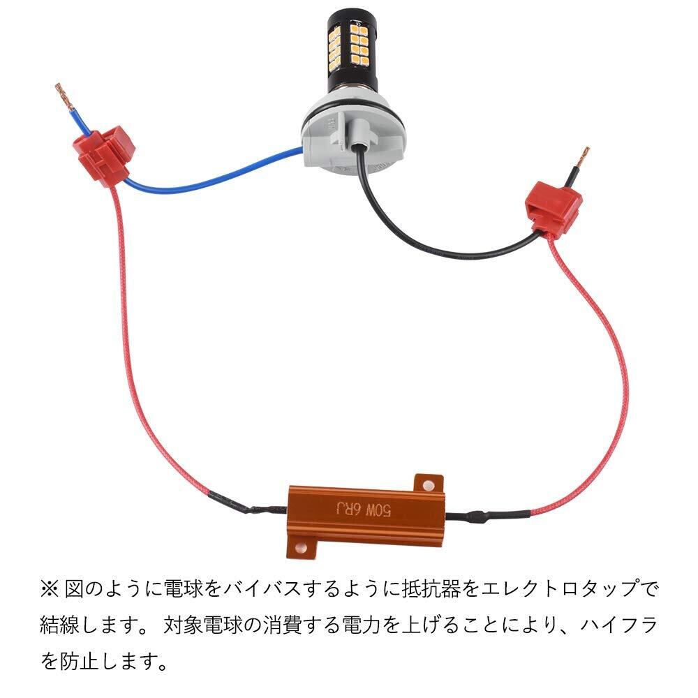Futwod ハイフラ防止抵抗 LED ウインカー ハイフラ防止 抵抗 50W 6Ω 6オーム ハイフラ防止抵抗器 ウインカー抵抗 ハイフラ抵抗 メタルクラッド抵抗 LEDウインカー 抵抗器 エレクトロタップ付き 12V 車用 バイク用 4個セット
