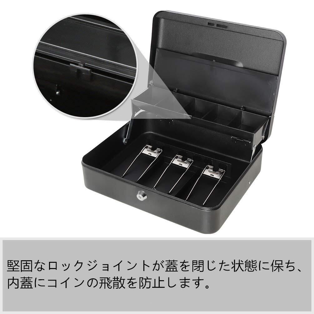 Jssmst(ジェスマット) 手提金庫 キーロック式 会計用コインケース 3つスプリングクリップ 紙幣整理 金属製 30x24x8.8cm(黑 キーロック)