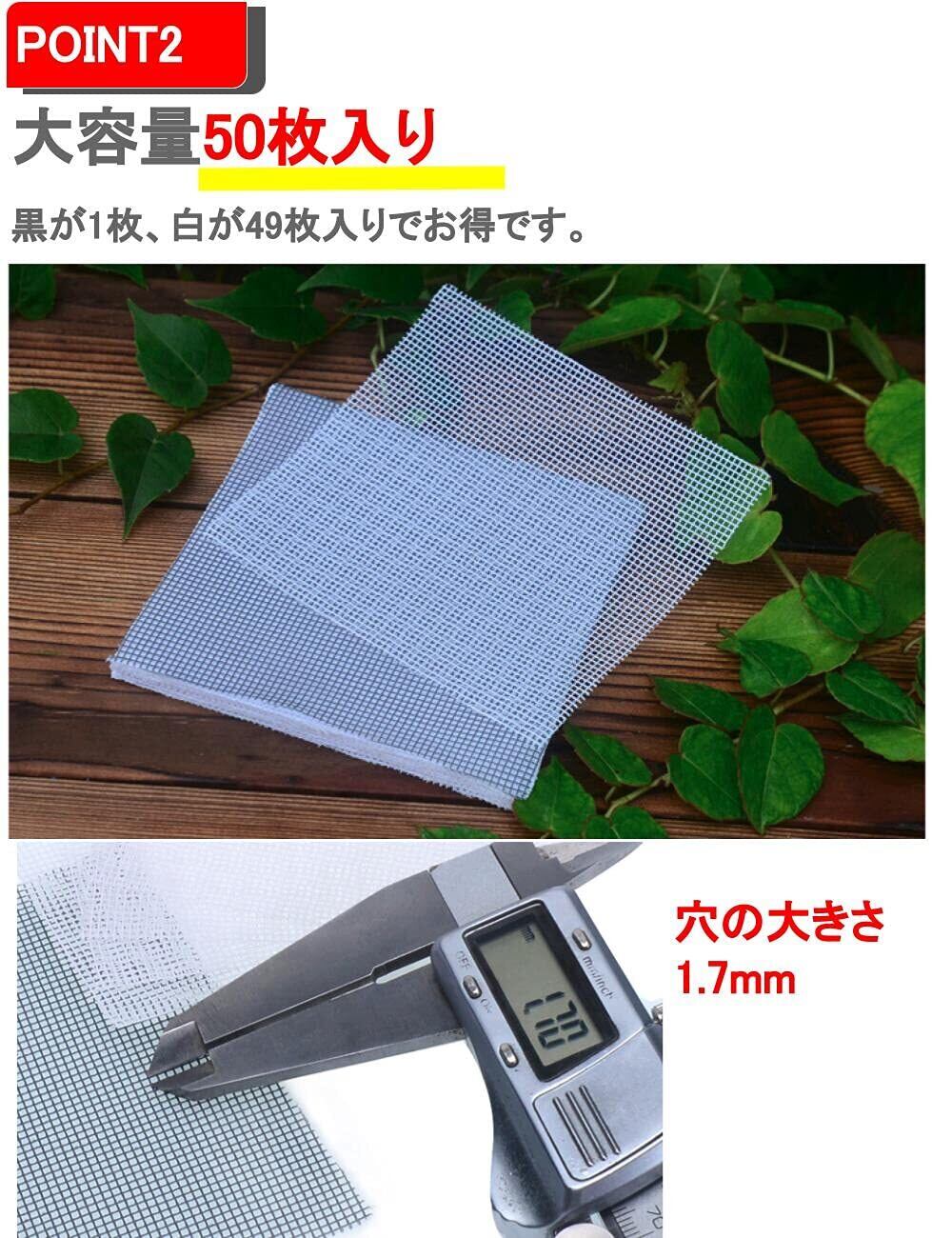 【鉢底から用土が落ちない】水捌けや空気の流れが良く、根腐りを防止します。虫の侵入も防止します。 【大容量100枚入り】黒が1枚、白が99枚入っていてお得です。 【商品詳細】本体50枚入り、10cm×10cm、穴の大きさ1.7mm