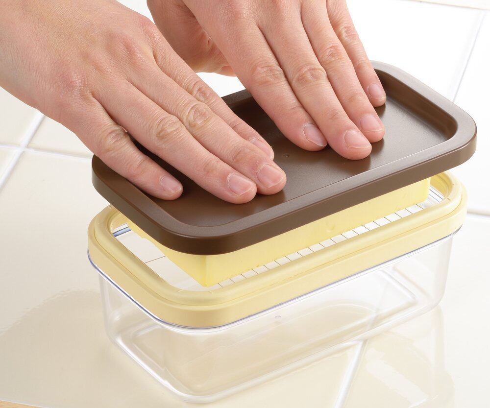 バターをワイヤープレートにのせて、ふたでギュッと押せば約5gのうす切りが完成です