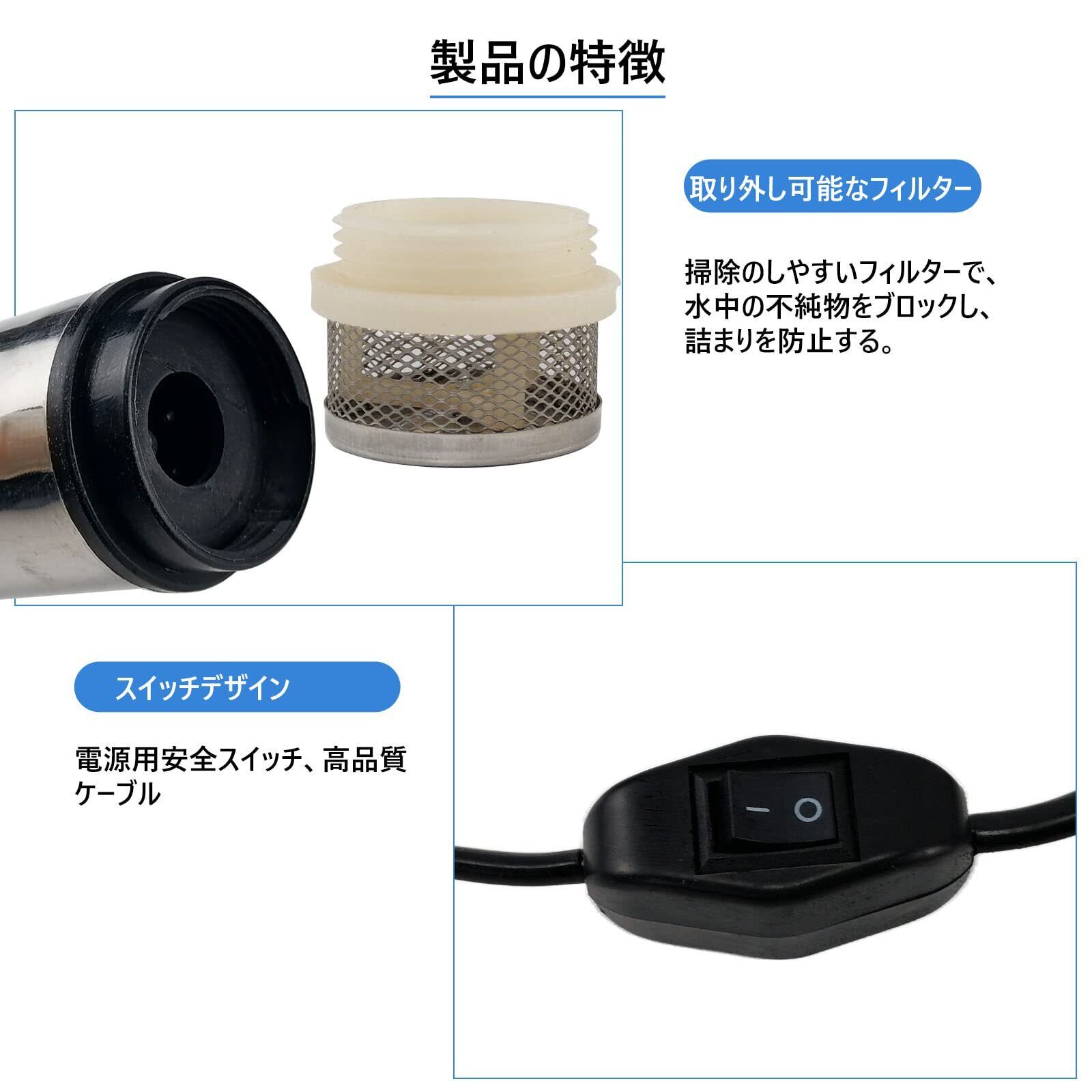 7Akiranoai 12v 小型 水中ポンプ 80W 毎分 30L スイッチ式 ビルジポンプ 水中ポンプ 軽量 静音 給水・排水ポンプ 水中ポンプ