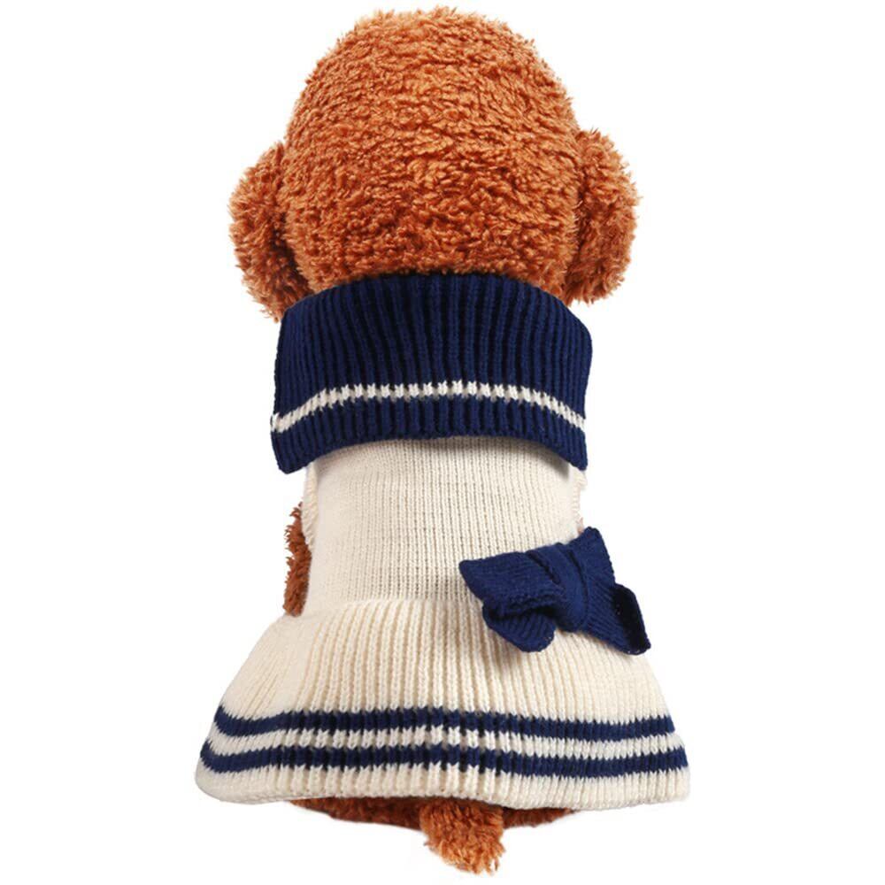 YOASONEK ペット服 かわいい ドレス 犬 服 ワンピース 秋冬 スカート 犬猫用 ニット セーター オシャレ 可愛い 小型犬 中型犬 お姫様 犬洋服 お散歩お出かけ ドッグウェア 記念撮影 誕生日 クリスマス 猫服 女の子 防寒 (S, ブルー)