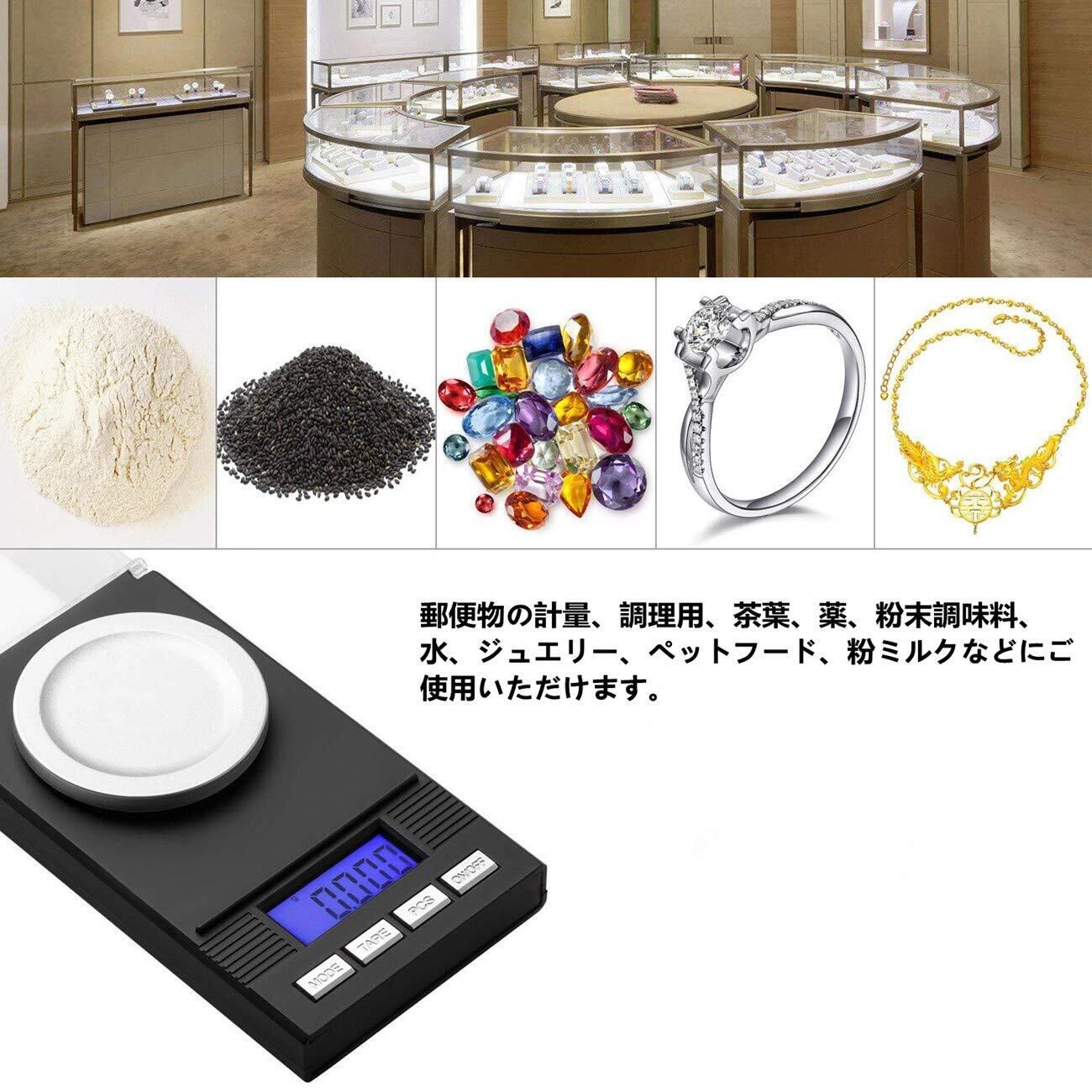 様々なシチュエーションでお使い頂いてます: 郵便物の計量、調理用、茶葉、薬、粉末調味料、水、ジュエリー、ペットフード、粉ミルクなどにご使用いただけます。