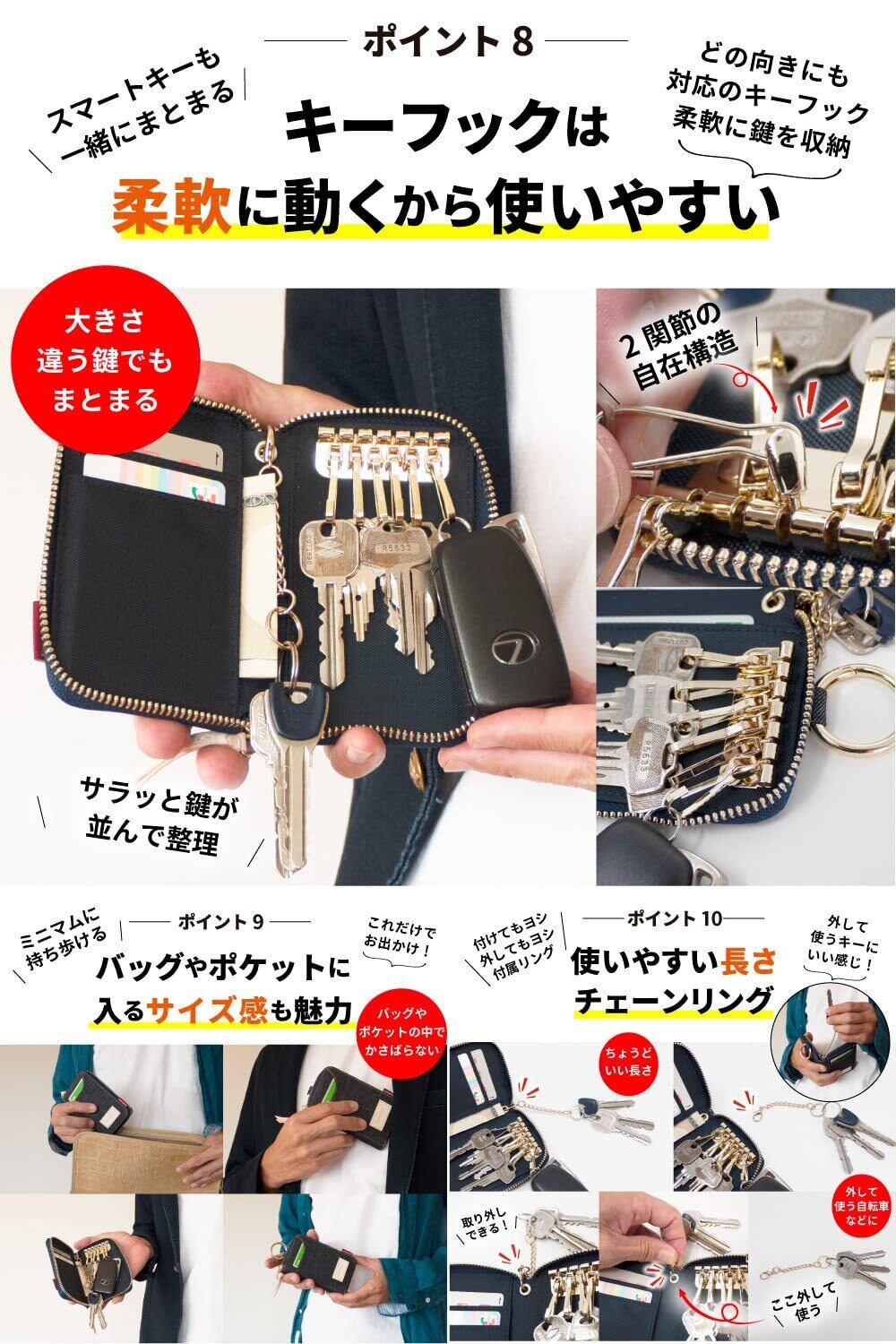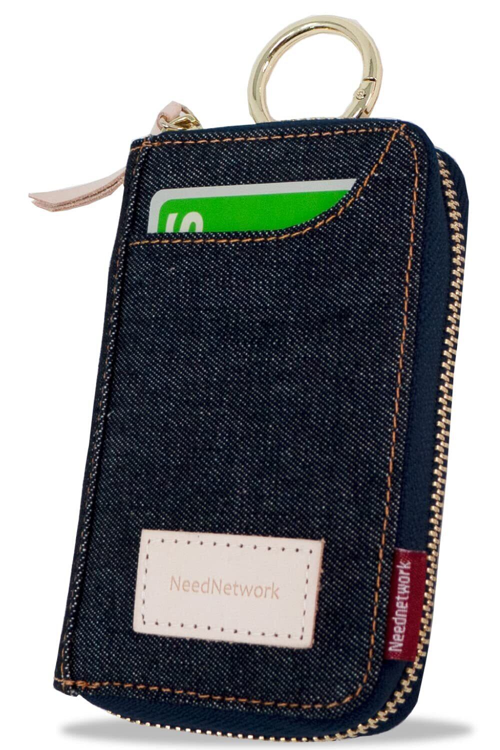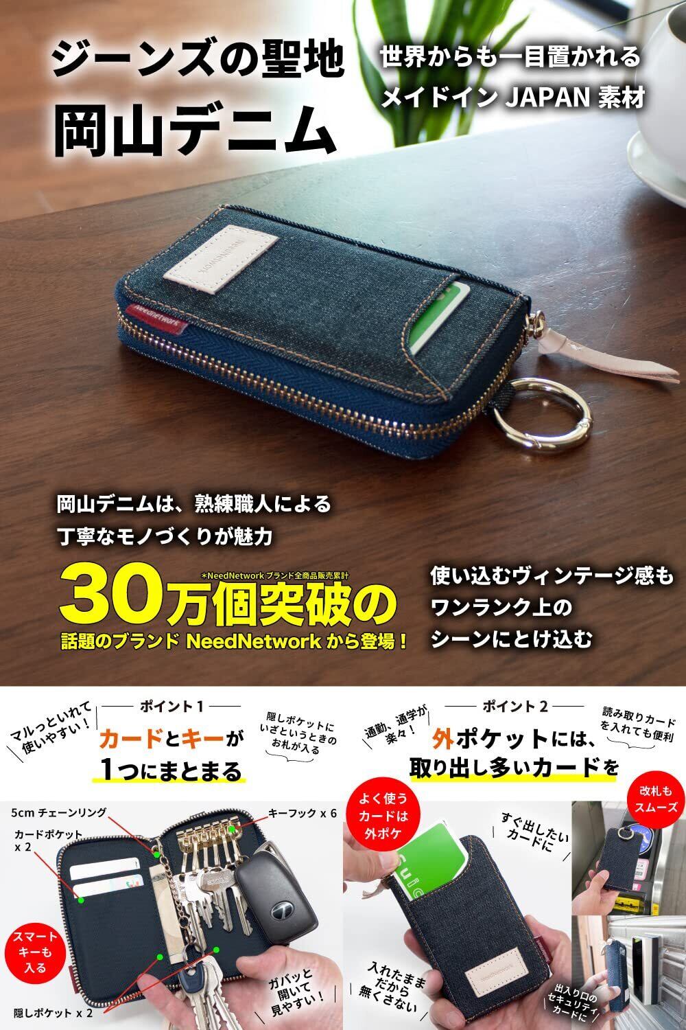 [ニードネットワーク] 岡山デニム キーケース メンズ スマートキーケース カード 大容量 メンズキーケース 6連 外側ポケット カード入れ キーリング