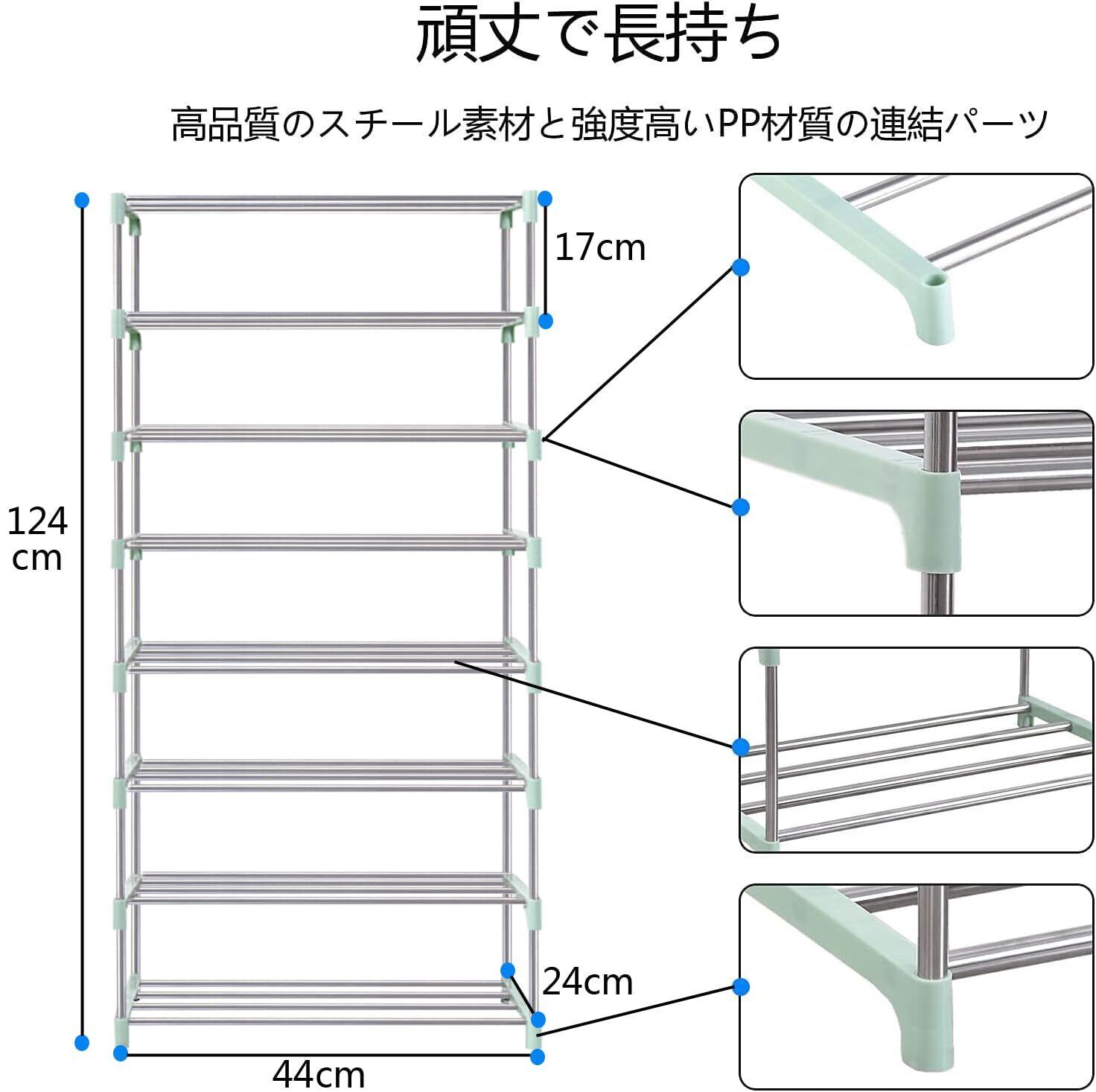 ETAOLINE シューズラック 大量 組み立て式 靴下駄箱 省スペース シューズボックス スリム 玄関収納 靴入れ 棚 (8段)