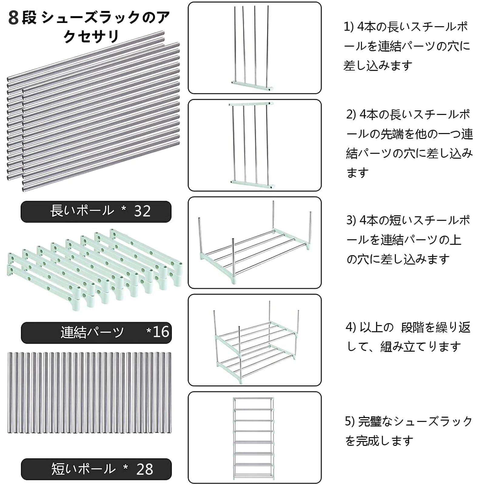 【組立簡単】工具不要の簡単組み立て式で、分解もクラクラ。スチールポールを穴に差し込むだけで、一人でも、簡単にできます 。靴収納ラック 3段(約):幅44*奥行25*高さ38CM、4段(約):幅44*奥行25*高さ56CM、8段(約):幅44*奥行25*高さ130CM