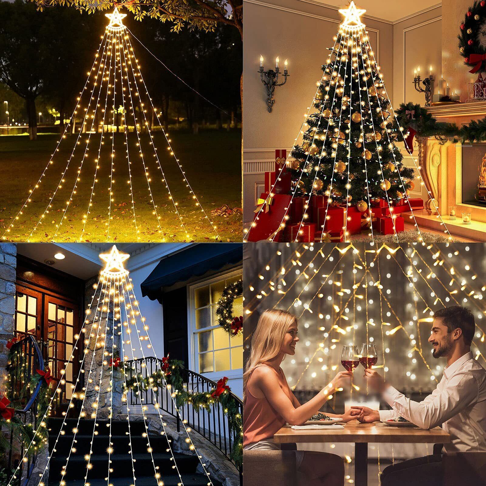 【パーフェクトデコレーション/ウォームギフト】クリスマスツリーライトは、パティオに沿って木を飾ったり、屋根やクリスマスツリーに沿って吊るしたりするのに最適です。庭、庭、屋外の装飾、ハロウィーン、クリスマス、新年、結婚式、パーティーに最適です。 、休日、バレンタインデー、感謝祭。そして、友人/隣人への暖かい贈り物です
