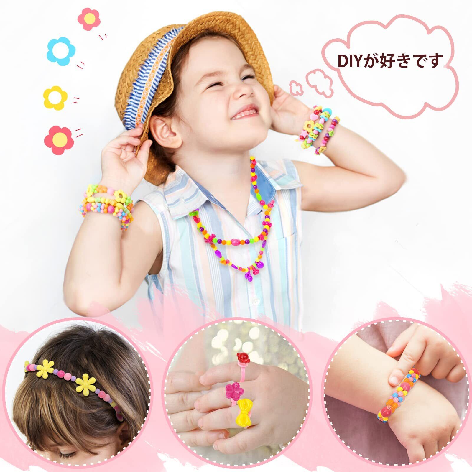 【メイキングトイ 女の子】さまざまなカラフルなビーズで、お子様がブレスレット、ネックレス、指輪、友達、お母さん、おばあちゃんのためのヘアバンドをDIYできます。 また、彼らの創造力を向上させ、色の感度を学びます。