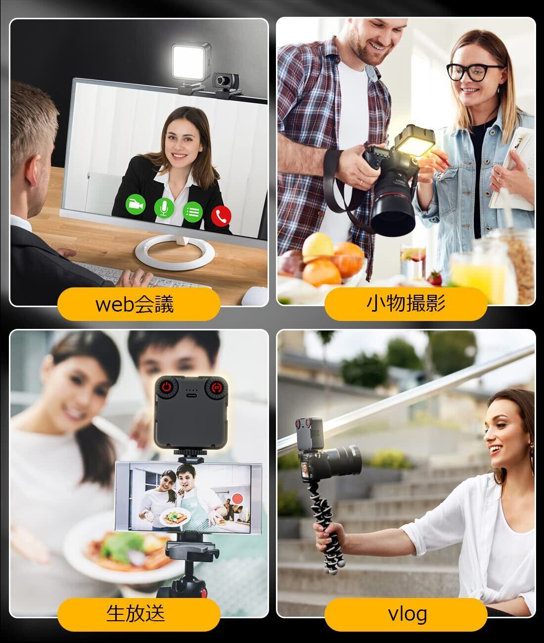【革新モデル】 LEDビデオライト 撮影ライト カメラライト 無段階調光調色 360度回転 小型 3000K-6000K CRI95+ 補助照明 撮影用ライト Type-C USB充電式 自由雲台付属 iphone/Gopro/Osmo Pocket/Samsung/Nikon/Canon/Sony/アクションカメラに適用