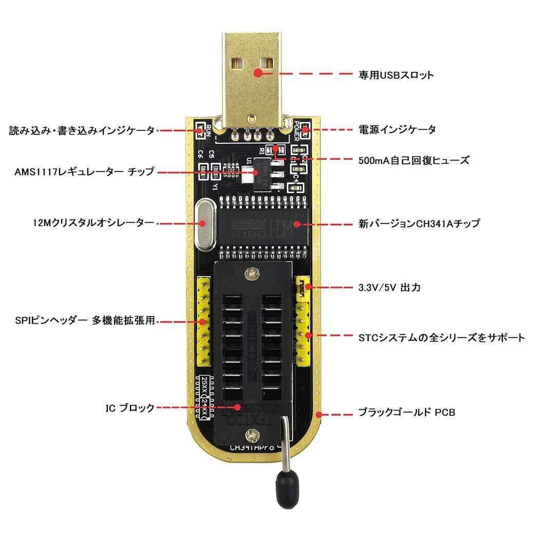 KeeYees CH341A ROMライター SPI Flashライター 24 25シリーズ EEPROM BIOS プログラマー USB-TTLコンバータ + SOP8 ICテストクリップ 8ピン