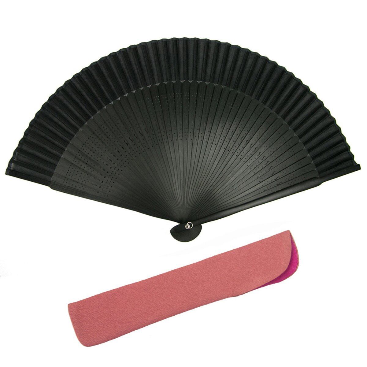 【人気商品】[KYOETSU] [キョウエツ] 扇子 正絹 無地 黒骨 2点セット(扇子、扇子袋) レディース