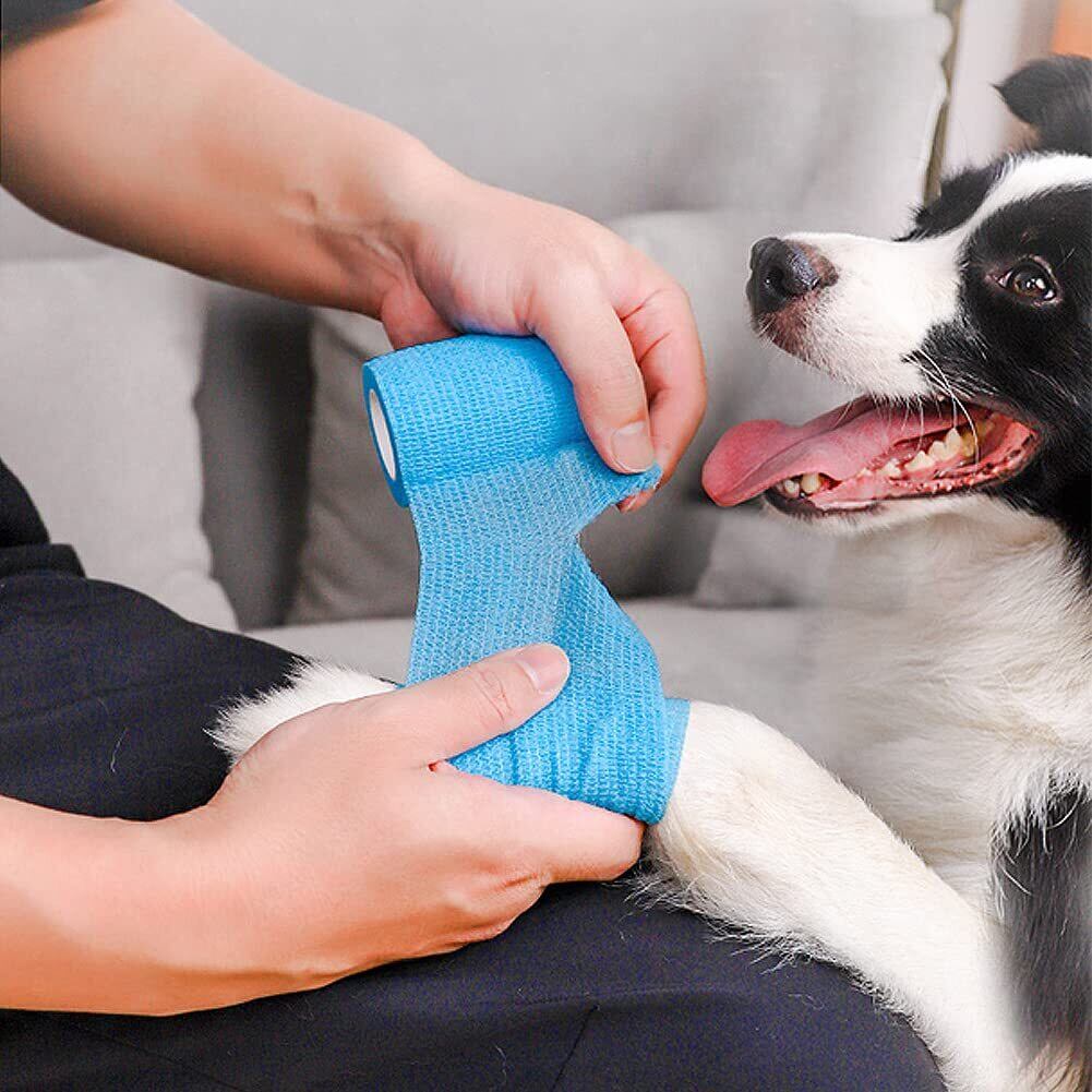 【新着商品】Refoiner ペット包帯テープ 犬用包帯 ペットフレックス 不織布製 防水 粘着包帯 粘着力 伸縮包帯 自着性テープ テーピング 5cmx4.5m 11点セット 5cm*4.5m | Premium Stage