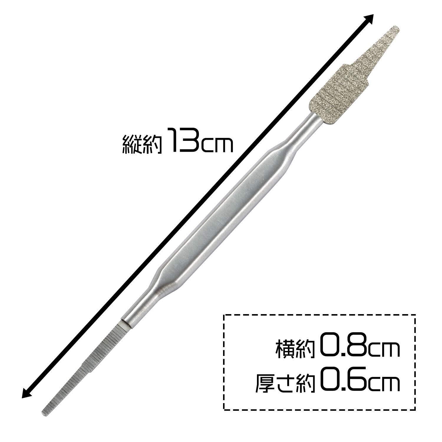 ダイヤモンド粒子加工を施したヤスリは軽い力でも楽にしっかり削れ、先端カーブ形状が削りやすい
